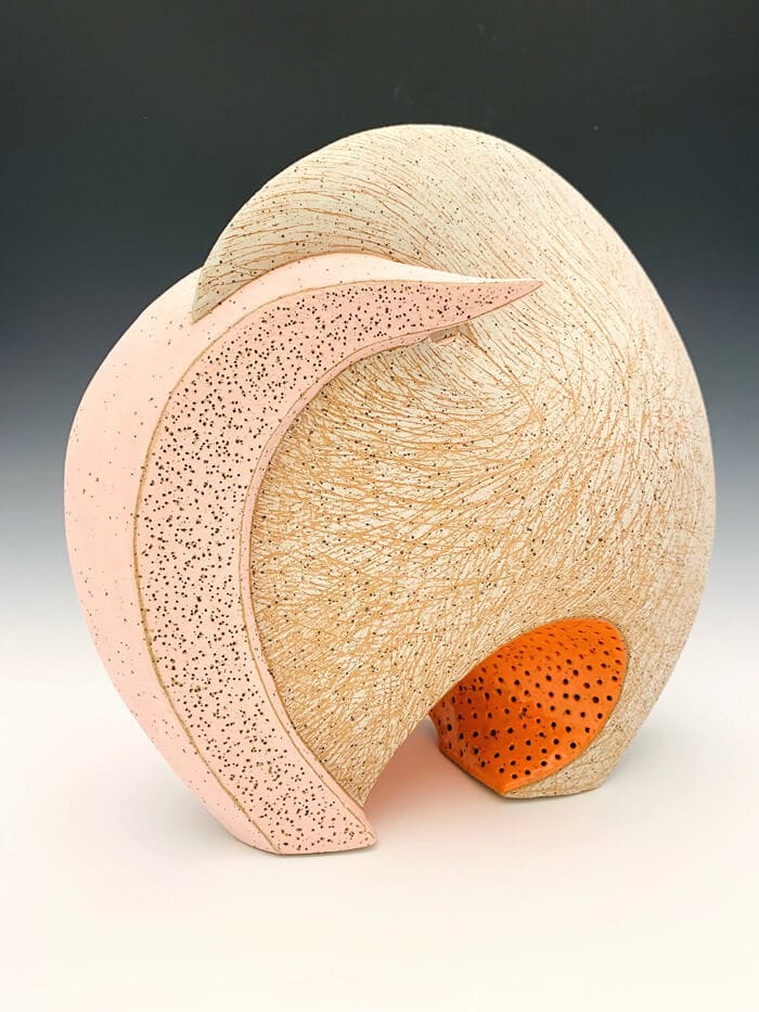 Other works are downright whimsical, including Andrea Pichaida’s ethereal hand-built ceramic vessels, each of which resembles a different variety of alien seed pod; or Justin Richel’s wood, gouache, and acrylic sculptures, including “Man and His Symbols,” an unnerving stack of near-exact facsimiles: Jung’s paperback book topped with a browning banana, crowned with a sliver of spent chewing gum.