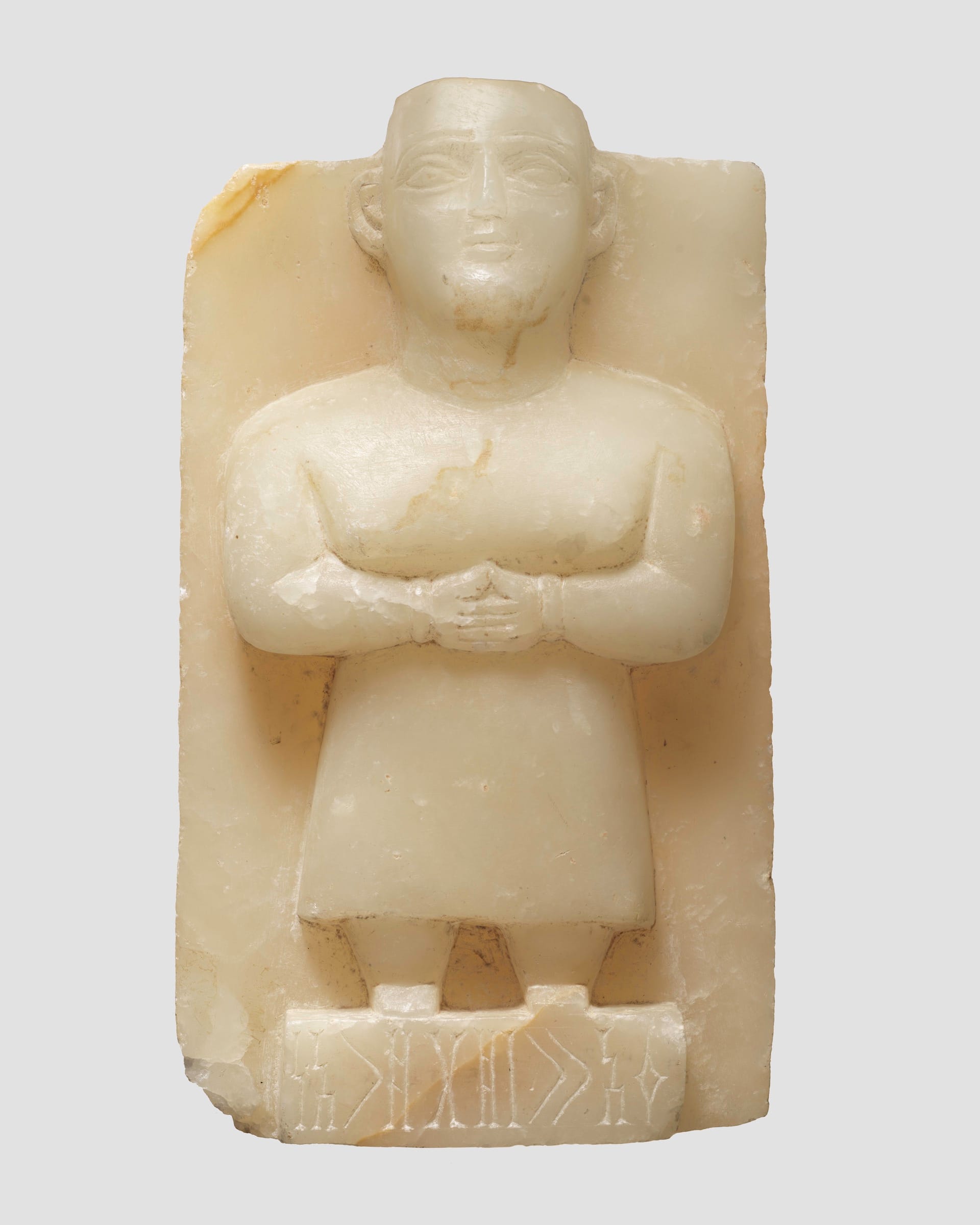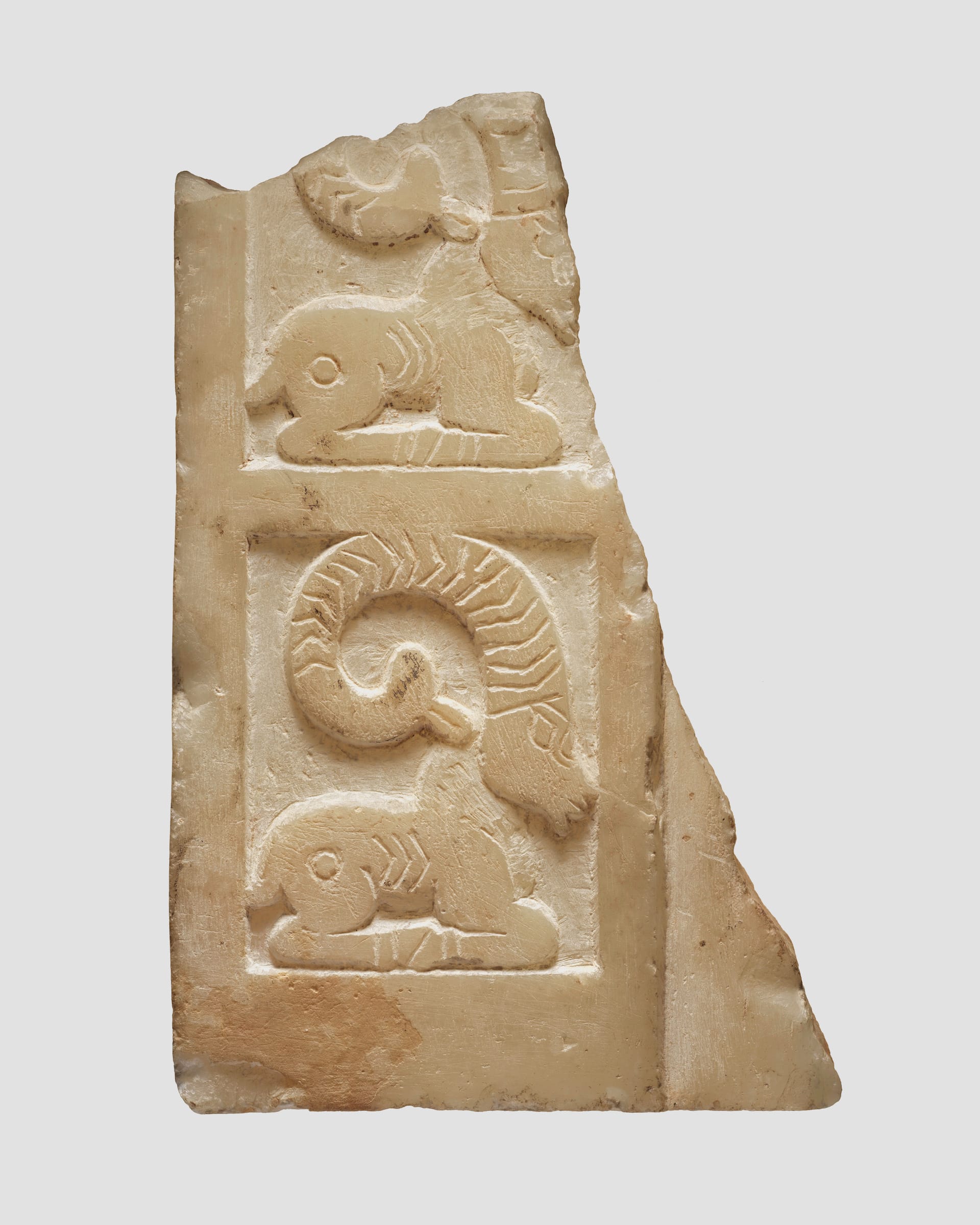 Museum officials believe many of the newly loaned works were used for funerary purposes, in part because they are made of yellow calcite alabaster — a soft mineral found in various funerary objects across ancient Southwestern Arabia. They include a funerary sculpture portraying a woman holding her arms in a prayer-like fashion, several complete or fragmentary depictions of individual heads, a stone incense holder, bronze works, and pieces depicting ibex imagery.