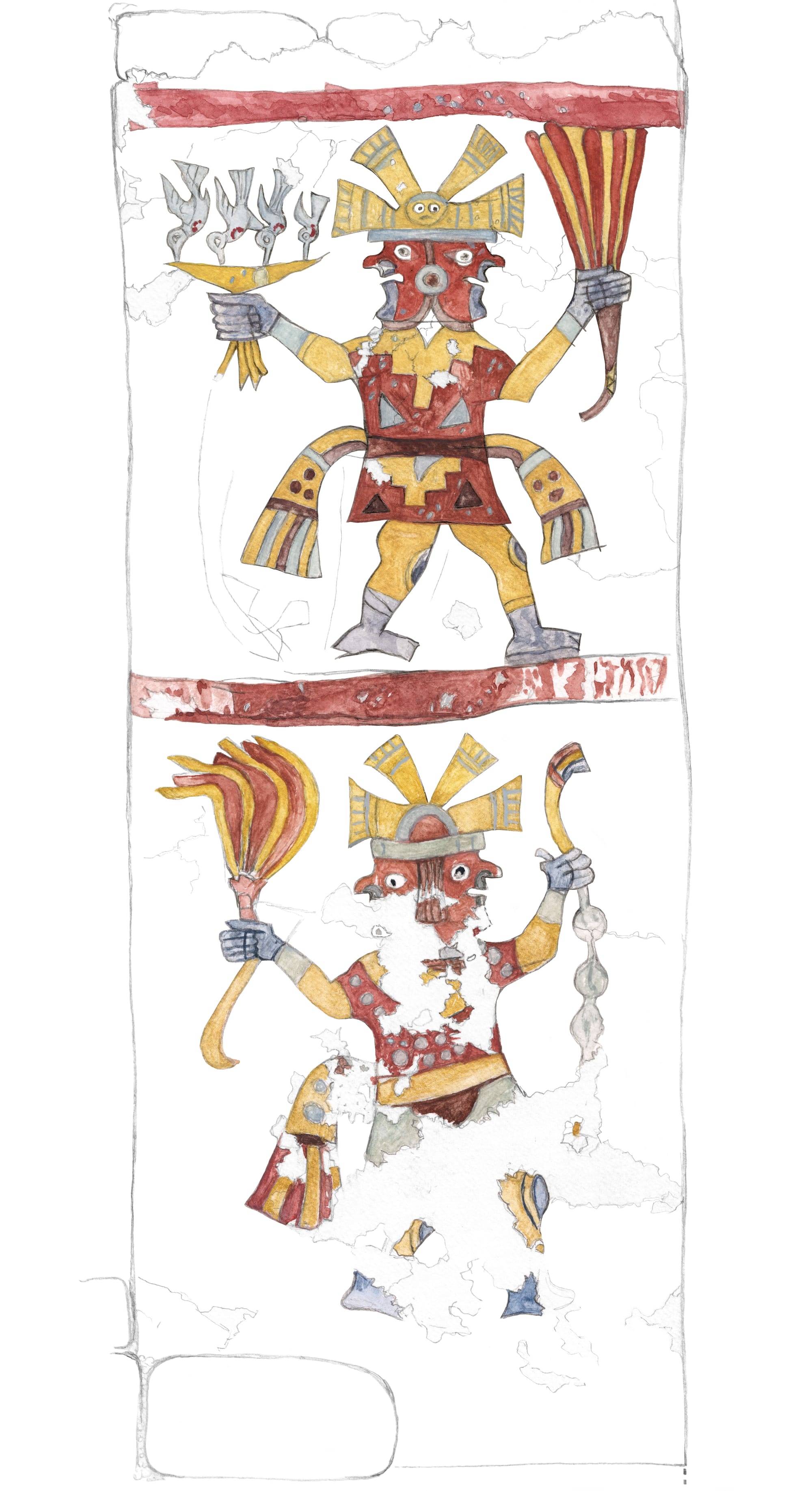 “When we were doing this work, we could glimpse that, around the corner to the right, the other side of the pillar was also painted with a similar image,” Trever said. “We could see just the edge of the straight feather fan and the hand that holds it.”