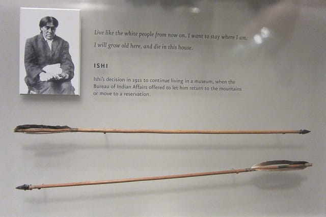 Those were the words uttered by Ishi, who claimed to be the last of the Yahi Indians, when the Bureau of Indian Affairs offered a relocation to a reservation in 1911. He’d suddenly appeared from the California wilderness, and found himself at the University of California’s Museum of Anthropology in San Francisco, acquiring the Yahi word for “man” as his name due to the Yahi custom of not saying your own moniker aloud. For the last five years of his life until he died in 1916 from tuberculosis, he was a sort of living diorama, as well as a voice for a vanishing past.