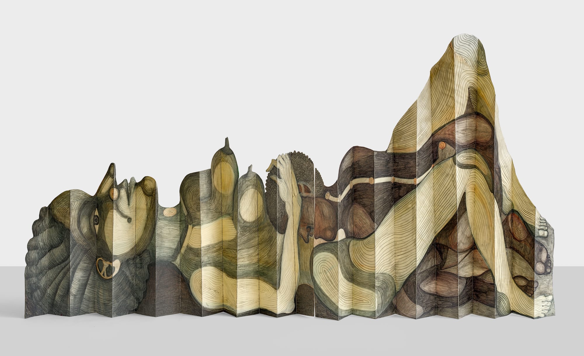The Awake Volcanoes marks the first solo US museum show dedicated to the work of Chilean-born artist Sandra Vásquez de la Horra, featuring around 200 drawings, photographs, paintings, and paper sculptures. The artist grew up under the dictatorship of Augusto Pinochet before settling in Germany in the 1990s, and her work often engages with themes of violence, repression, and freedom. In her vibrant and visionary paintings, she draws parallels between the female body and the lands, where bodily forms double as mountains or rolling hills. Drawing on spirituality, myth, and psychological themes, she imagines a hopeful world characterized by perseverance in the wake of trauma.