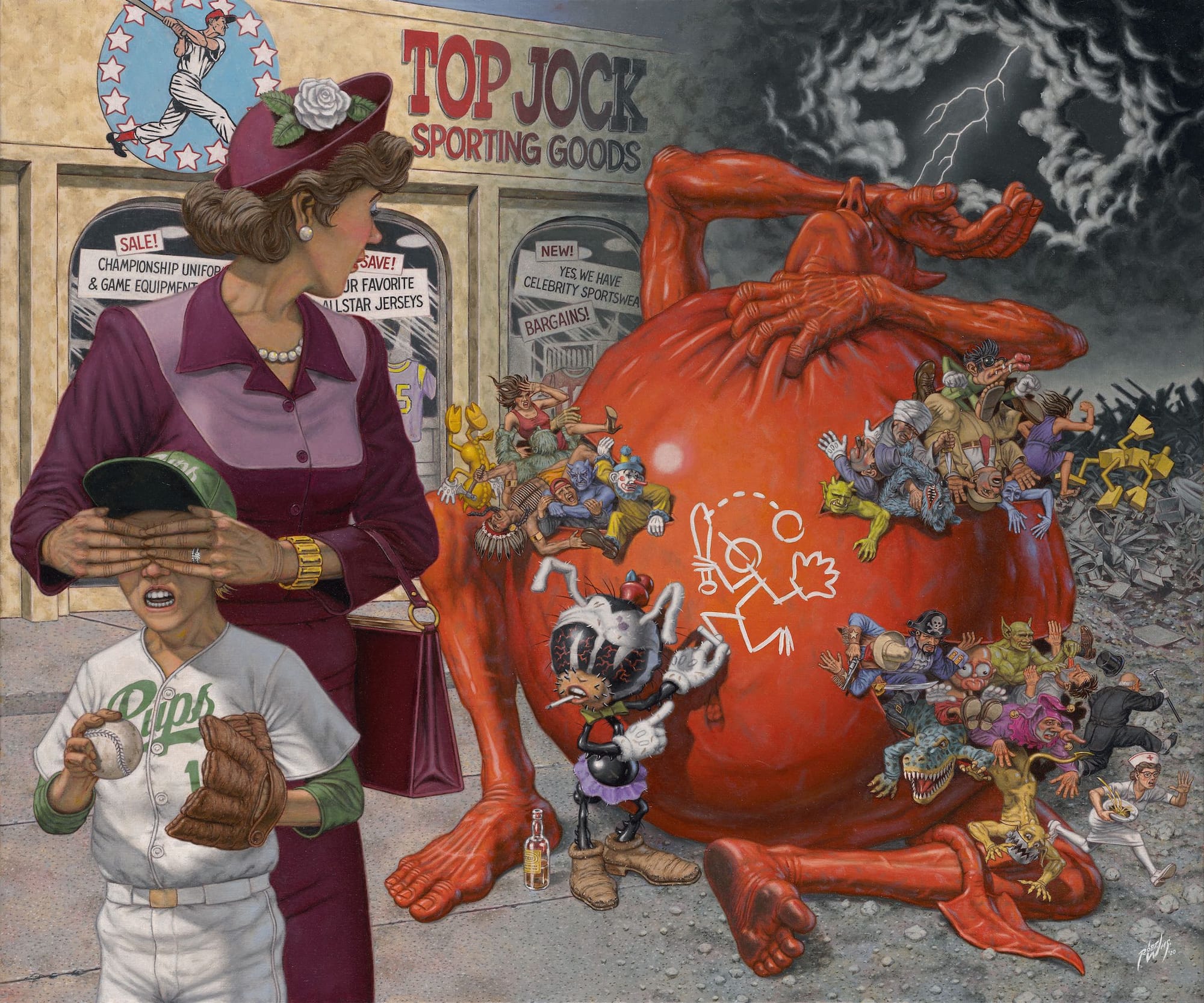 Robert Williams is often considered the godfather of the so-called “lowbrow” art movement, whose frenetic, captivating canvases fuse cartoons, sci-fi, hot rod culture, and the dark side of classic Americana, presented on a grand scale reminiscent of traditional history painting. Comfortably straddling the worlds of so-called “high” and “low” art, however, he dissolves these arbitrary categories entirely. Williams helped create legendary Zap Comix in the late 1960s; co-founded underground art magazine Juxtapoz in 1994; and was included in the seminal Helter Skelter show at the Museum of Contemporary Art, Los Angeles, in 1992, and the Whitney Biennial in 2010. Fearless Depictions gathers 57 paintings created since 2001 alongside two large sculptures, showing that Williams’s visionary mix of satire, humor, and mischief remains trenchant and vital.
