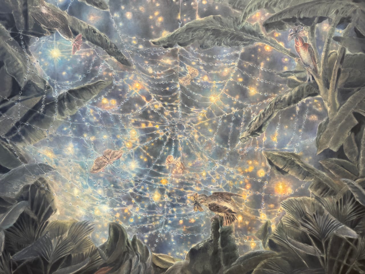 These dreamy paintings made with oil paint, colored pencils, and marble dust on linen are bursting with magical qualities. A strong sense of light dominates each work, and you’re left wondering what is happening in this visual version of magical realism. My only complaint is that the details and moody qualities of the paintings are lost in this well-lit gallery. Each work feels like an ephemeral universe flickering before our eyes. —HV