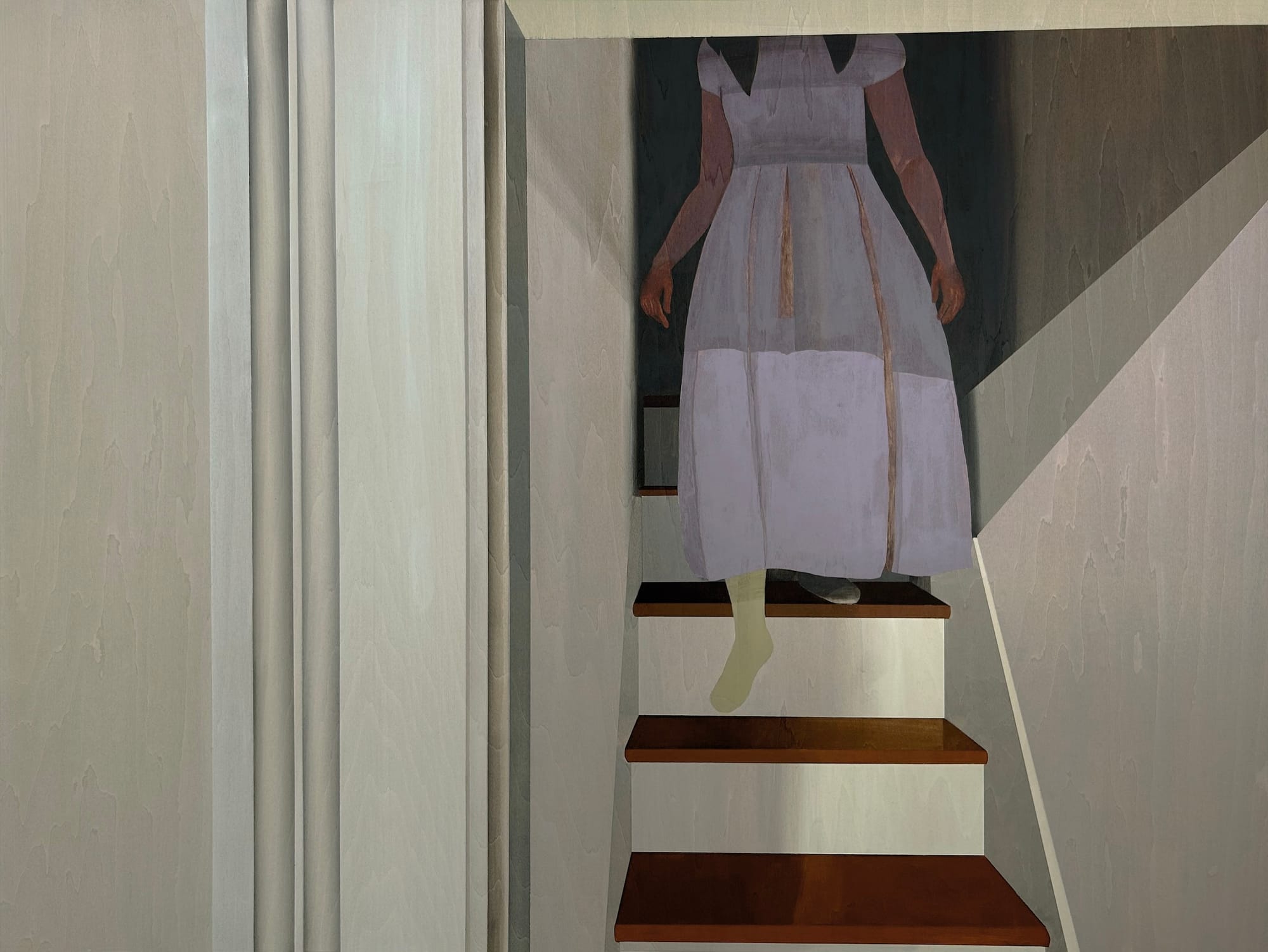 Infused with a highly graphic and moody style, Emily Pettigrew’s art is both solitary and tender, equally lonesome as it is charming. The Fenimore Art Museum presents some of her latest work in this exhibition, which includes “Kim’s Lilac Dress” (2023) and an image of a woman gently descending a staircase. Pettigrew’s figures are often suspended in moments of dreamlike pause amid stark architectural environs, where shadows hang long and a gentle wind blows, painterly visions whose gentle stoicism naturally pulls at our heartstrings.