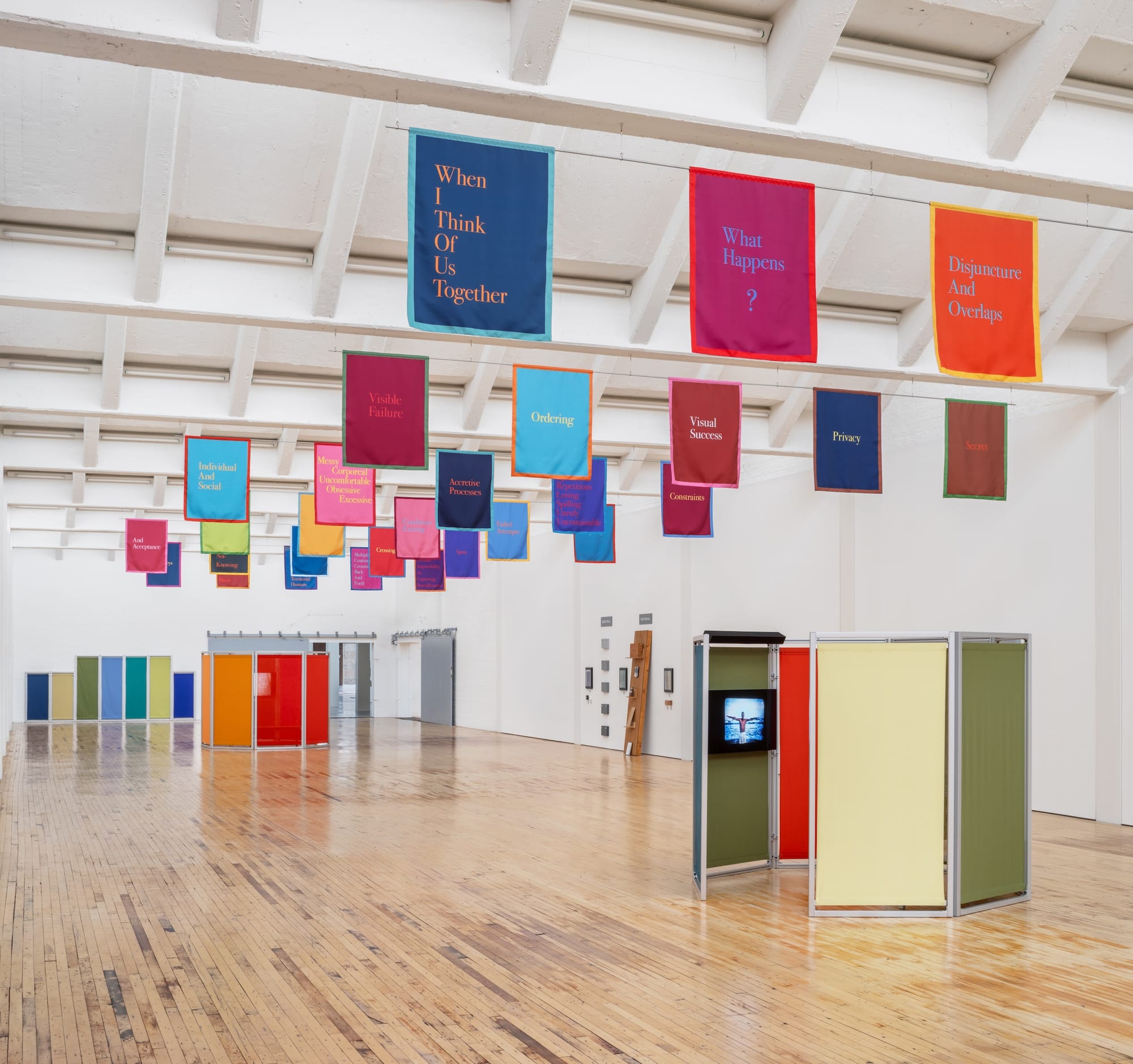Her first major solo museum show in New York State, Renée Green: The Equator Has Moved is a victorious presentation of this powerhouse artist in full bloom. The dynamic display includes her text-based work in sculpture, wall paintings, and various multi-media sculptural installations, showcasing Green’s poetic in-your-face-ness at its most potent. Her highly aphoristic style of rearranging words to expose ulterior meanings is on full display in the sprawling exhibition that fills two adjacent gallery halls. Take your time to take in this superior show that features some of her earliest work, such as “Colour Games” (1989), to her latest series of colorful banners, including “Space Poem 14” (2024) with candid veiled phrases such as “Every Day I Try.”