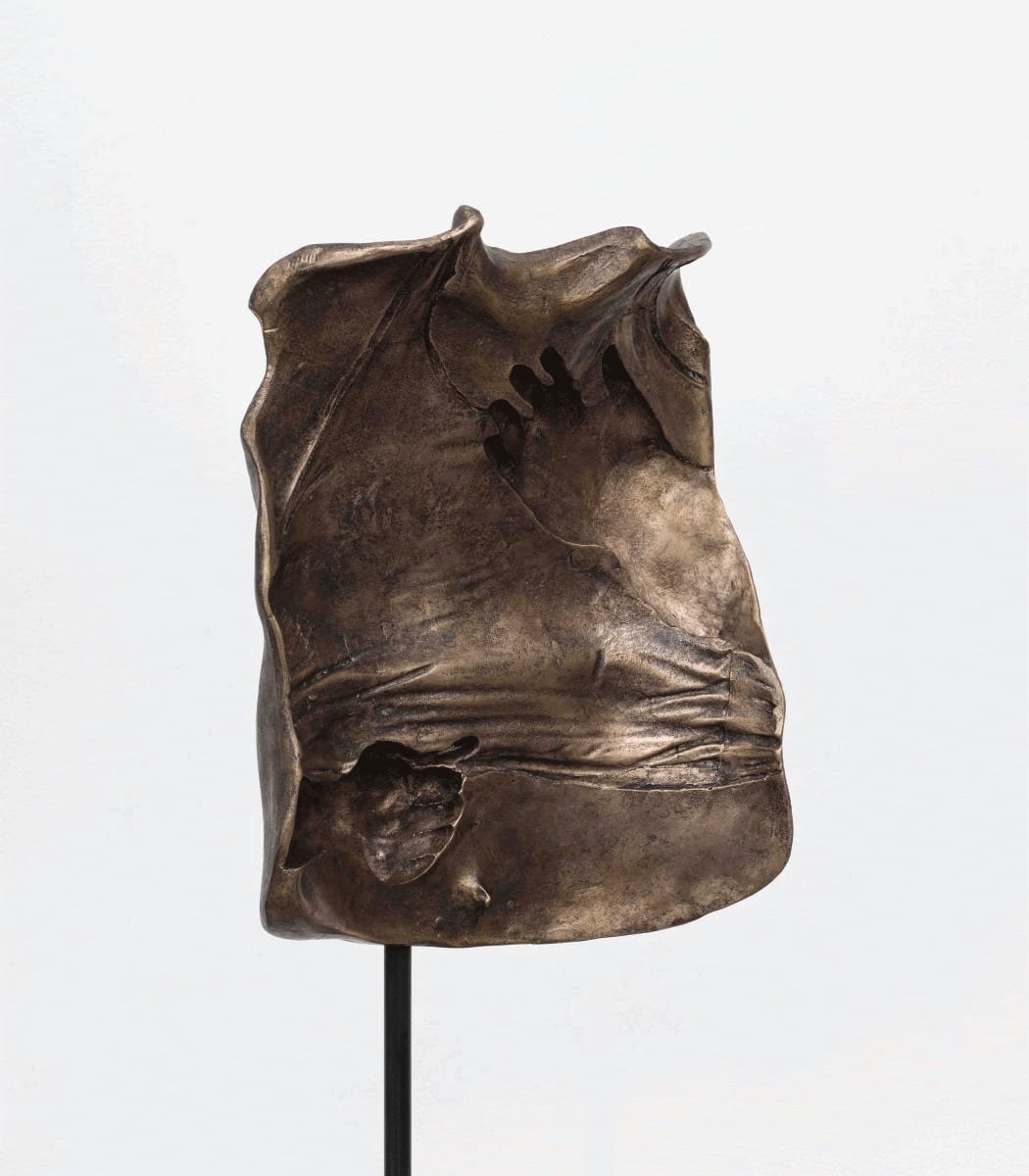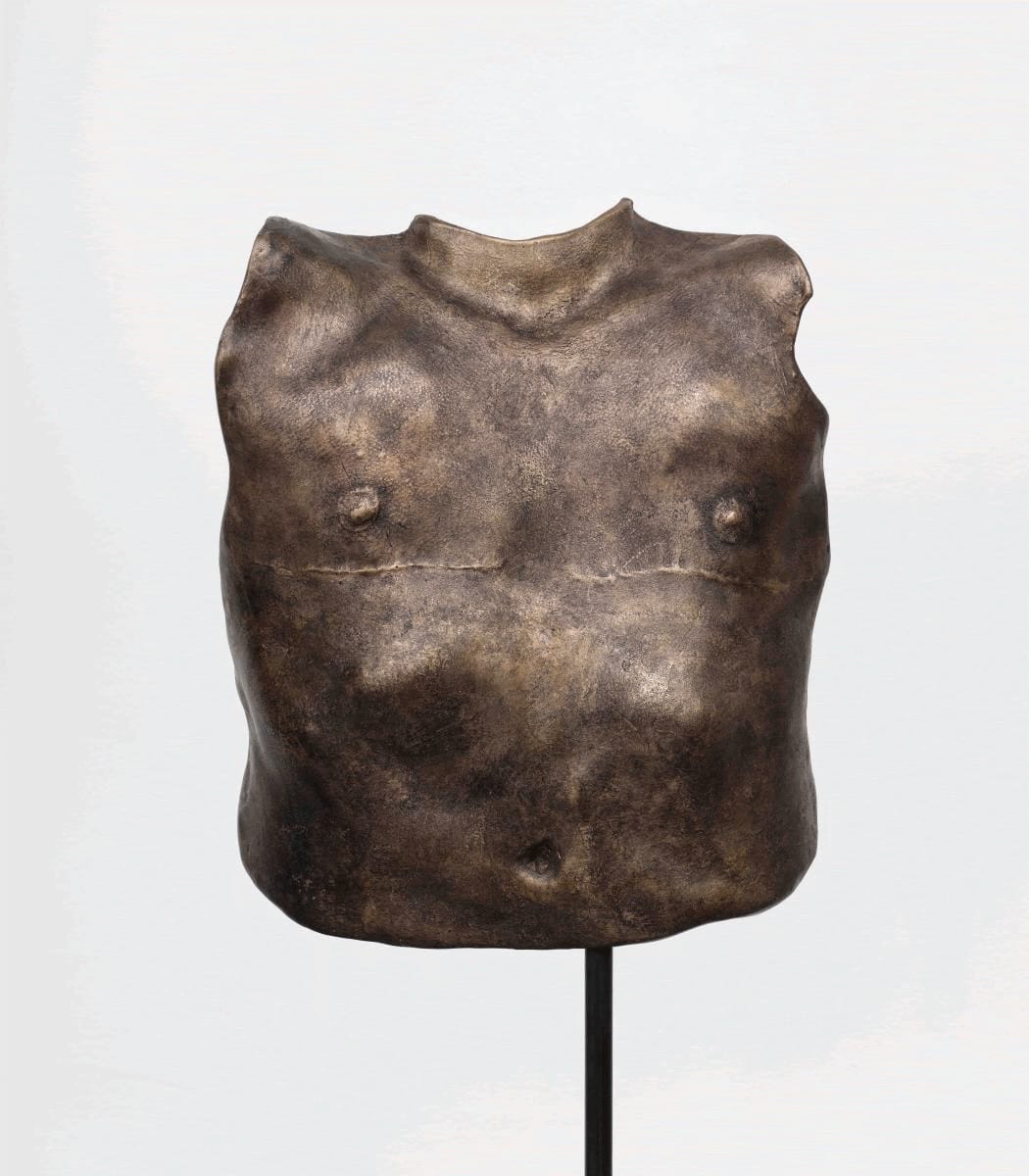In poetic gestures that bear the trace of human experience, Young Joon Kwak creates alternative representations of queer and trans embodiment. This bronze, included in their solo exhibition at the Leslie-Lohman Museum in New York City this year, belongs to a series of evocative cast portraits of the artist's friends and collaborators. The sculpture's convex side depicts studio assistant Charlie's chest after top surgery, while the concave surface shows his chest pre-surgery, wearing a compression garment known as a binder.