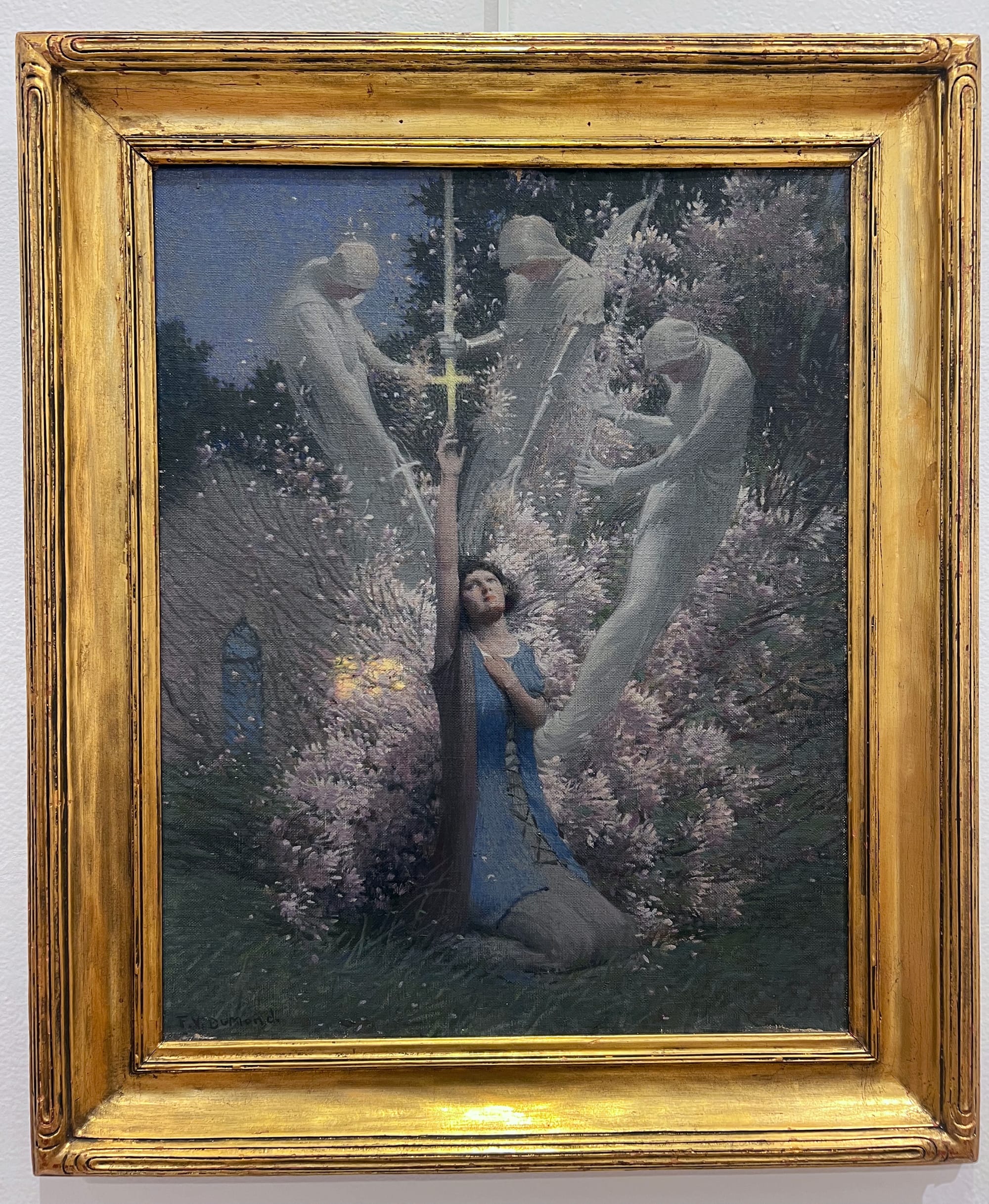 I was alternatively charmed and disappointed by the curation. The exhibition is divided into basic sections like “Exploring Landscapes” and “Before, During, and After War” (which, if we’re being technical, applies to all of time). That leads to some fun pairings — where else might you see a Carmen Winant next to a Milton Avery? And it collides works from disparate movements under these banners — a cubist work by Charles White beside Frank Vincent DuMond’s Waterhouse-like “Joan of Arc” (1935) — shaking up typically siloed categories. The language in these texts are accessible to a general audience, which is generally a positive, as in “In this section, these works tell the story of how … land has been modified, adapted, and enjoyed.” But sometimes it’s not enough: “This section presents artworks that defy categorization,” for example, or “The works in this section tell these stories better than a wall text could.”