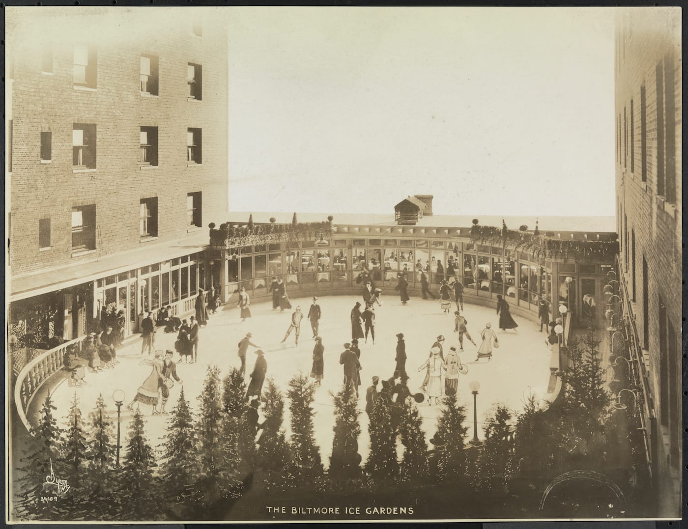 The Central Park rink quickly inspired the construction of similar rinks, from Union Pond — the first skating rink in Williamsburg — to Empire City Skating Rink on the Upper East Side. Then came a boom in the 1890s as skating became commercialized, and technological advances allowed for rinks to be built indoors. Ice hockey, especially popular among upperclassmen who attended northeastern boarding schools, became very fashionable. Around the same time, business owners began introducing rinks on rooftops, theaters, nightclubs, and restaurants.