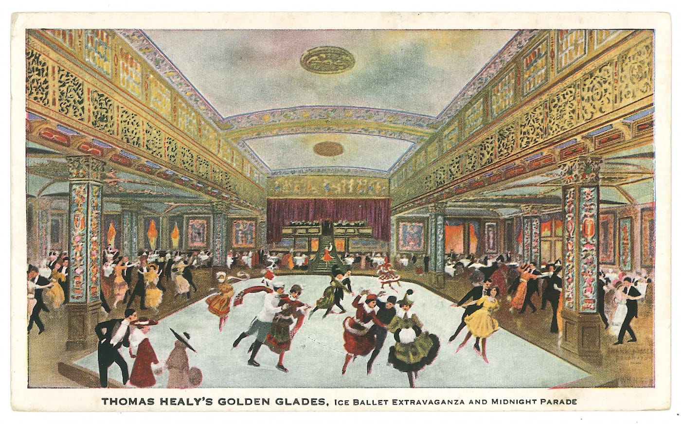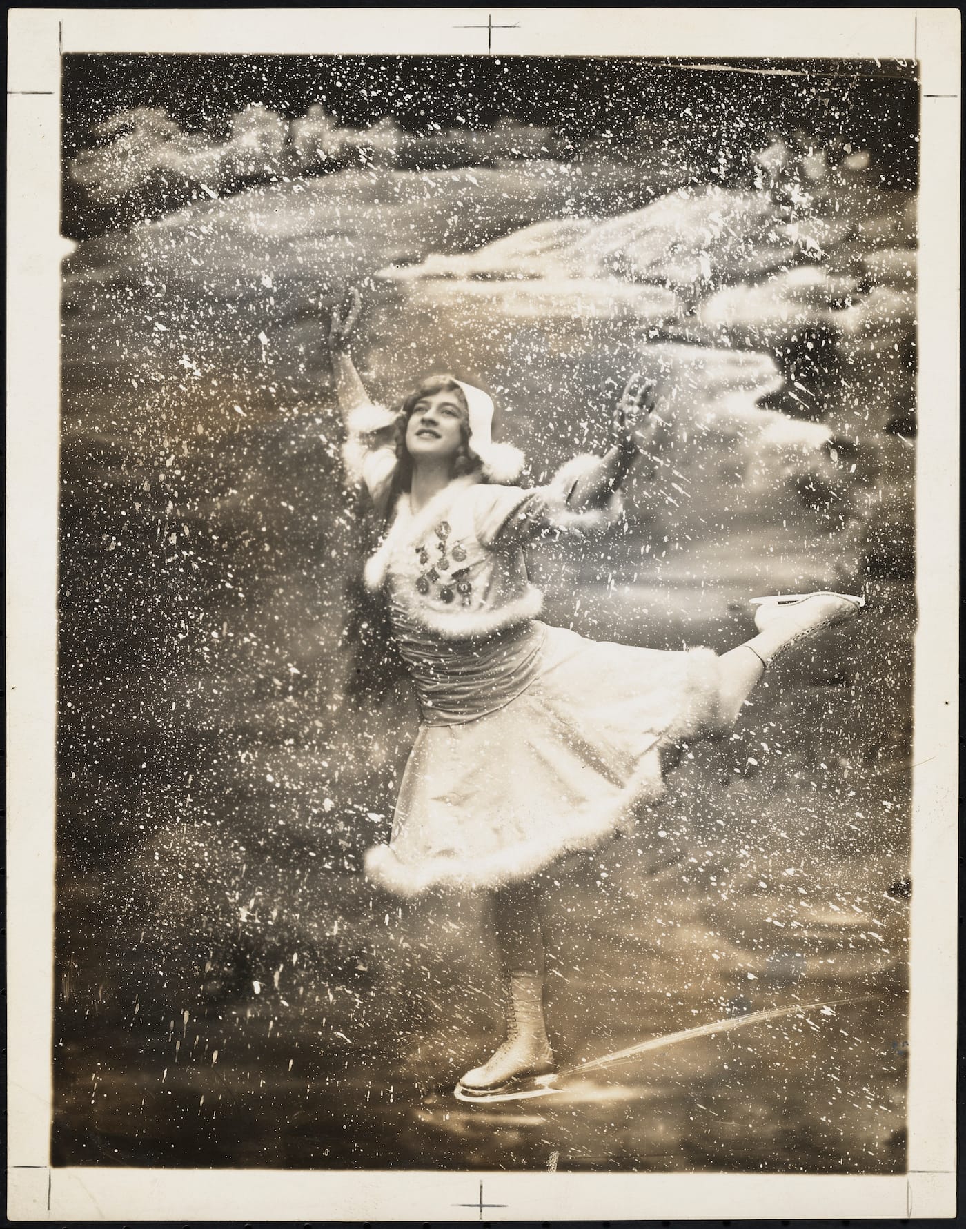 More and more venues hosted ice shows, where people paid to watch dancers in elaborate costume perform. But it was the arrival of Charlotte OelSchlägel to the stage of the Hippodrome theater in 1915 that made ice skating truly fashionable again. The young German skater, scouted by a New York producer in Berlin, performed in elaborate ice ballets at the massive theater, which sold out every night. OelSchlägel’s performances were glamorous and elegant, combining music, visual splendor, and sport.