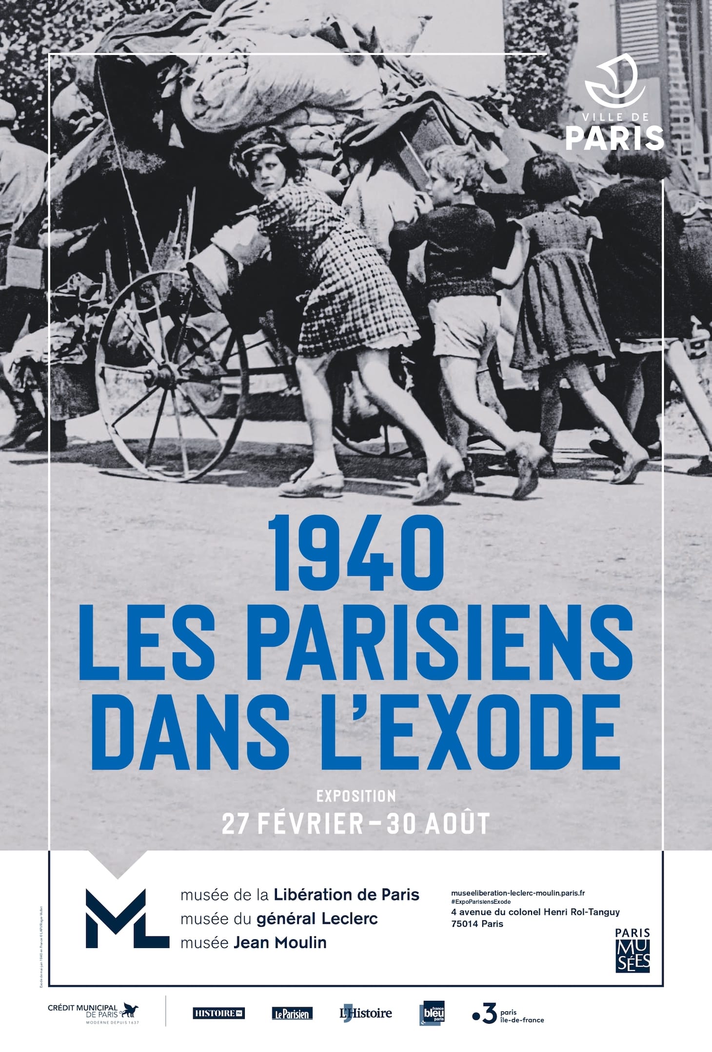 1940: Parisian Exodus continues through December 13 online and in person at the Musée de la Libération (4 Avenue du Colonel Henri Rol-Tanguy 75014 Paris). The exhibition was curated by Hanna Diamond and Sylvie Zaidman.