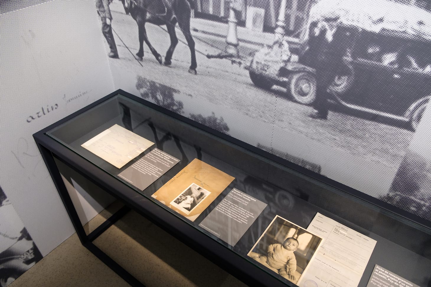 Above all, the exhibition privileges personal testimonies, highlighting individual itineraries (a strategy employed with great success elsewhere), such as that of a young boy who biked to the southern border with Spain before boarding a boat to the United Kingdom. Shifting between the individual and the collective, visitors learn in one particularly moving section that some 90,000 children went missing along the way. The unsolved files of infants separated from mothers and efforts to reunite families in Elle magazine underscore the far-reaching consequences of this ten-day event, which extended many years after the summer of 1940. Of course, there were also those who stayed behind, less by choice than necessity. One such person, Paul Léautaud, observed: “Paris is absolutely deserted. The word is apt, it’s empty. Shops are closed. A rare passerby […] All the buildings are shut up […] And the silence! Like a quiet avenue in the provinces, with no one in sight.”