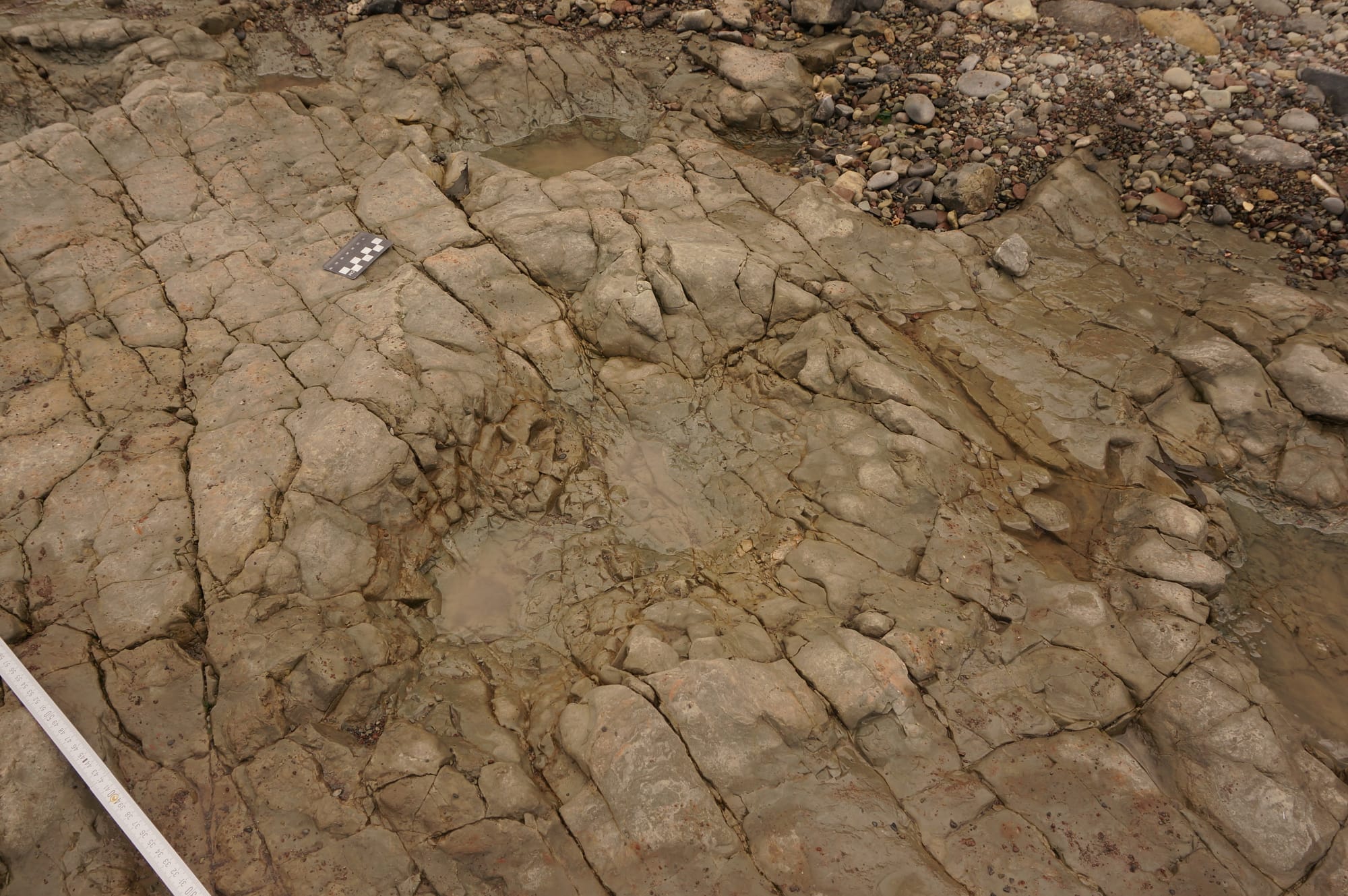Scientists in the United Kingdom say they have identified rare dinosaur footprints aged over 200 million years on a beach in Wales. According to the researchers, the prehistoric impressions indicate that "large, long-necked" dinosaurs from the late Triassic period once roamed the area.