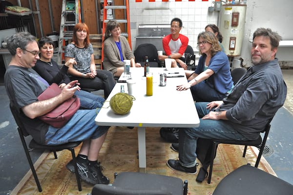 A view of the attendees of Sharon Butler’s “The Economics of Open Studios” discussion, which was part of Austin Thomas’s Meet me At the Market at the local Moore Street Market.