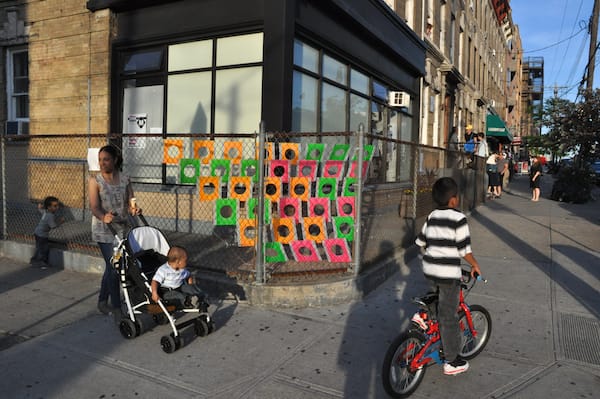 A work by Mary Schiliro, “Dripped dry in Bushwick” (2011), outside Norte Maar on Wyckoff Avenue.