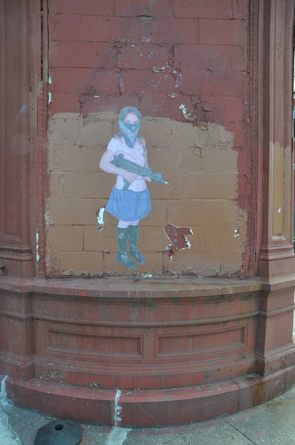 A child soldier street art piece in the warehouse land near the Montrose L stop. It is by Enzo & Nio.