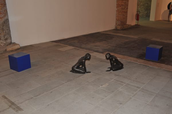Another formidable piece of his in the Arsenale is “Out of Sight (All On My Own),” in which he takes two modeled-after-Degas-ballerinas and places them looking at each other. They each slightly avert the gaze of the other, as if recognizing something alien in a mirror — a reflection, you might say, of their selves being twice removed from their original incarnations. Although a bit saccharine and kitschy in mechanism and medium, to take cognizance of art history in this fragmented manner is very alluring. What’s more, the dainty and shy placement of the pieces offers an open-ness to contemplation.