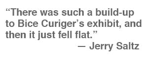 The entire layout of the Arsenale this year feels disjointed. On a whole, I felt like there was a dearth of strong work. I believe Curiger had aspirations to move beyond the trends of participatory art and ostentatious work seen everywhere else in Venice and other art fairs. She attempted to proffer pieces that were more experiential and, in an odd way, classical. I do believe she was putting forward the idea that it is once again acceptable to enjoy beauty for beauty’s sake. And there is a decisively art historical slant, both in the form of many works and the references they make. I applaud her for these attempts. Unfortunately, her retreat from the overly cerebral doesn’t offer a good alternative and aspirations of beauty are quite lackluster. Disjointed and clumsy, the composition of the show suffers from regular bouts of acute incongruity. Jerry Saltz, the American art critic and one of the more unassuming people I met at the Guggenheim party described above, told me, “There was such a build-up to Bice Curiger’s exhibit, and then it just fell flat.”
