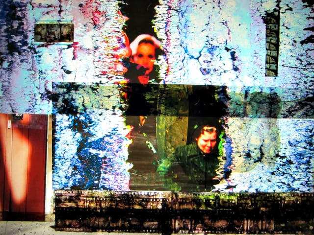 The RE/Mixed Media Festival launched in 2010 to celebrate “collaborative art-making and creative appropriation.” I stopped by in the afternoon and caught a selection of the day-long panels and media presentations that took over the two warehouse-like floors of the former public bath. Additionally, there was a “mezzanine” of installations in a space that served as a projection room for the lower level. It felt more internet cafe than art exhibit, but was worth visiting for Mark Street‘s vivid “Lightbox Collages” that involved layers of spliced old film, slides, and photographs.