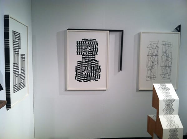 For the second year in a row, Elissa Levy and Elizabeth Tenenbaum of InContext Tours took me around to a curated selection of booths at the Volta Art Fair; their program personally introduces the artist and the gallerist of each selected booth to viewers on their tour, a benefit I found extremely helpful. Following up from last year, Volta seems to have suffered some attrition of some of my favorite galleries that I reviewed last year (including Sue Scott, New York-LES, and Nettie Horn, London-Shoreditch), but there was a surprisingly high percentage of good shows among the current 80 exhibitors. The fair alternated between esoteric German and Scandinavian booths and North American provisional painting. Blackston, Dodge gallery and Pablo’s Birthday — all in the LES — were standouts, all of whom presented medium-bending, hand-made oddities that felt intimate and well thought out.
