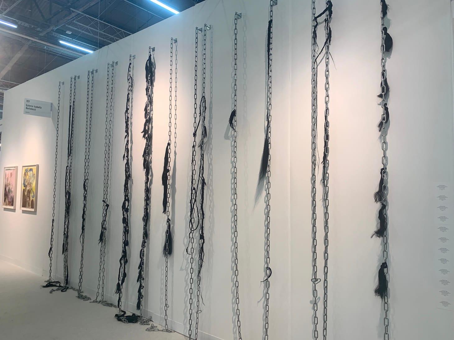 Strolling through rows of densely packed booths revealed a range of artistic approaches, from delicately woven textile works to figurative paintings in fluorescent palettes, to large-scale sculptures — some with more merits than others. Solo presentations focused on women artists, such as Garth Greenan’s presentation of Alexis Smith, were especially strong this year (likely due to competition for the new AWARE prize, for which Smith was shortlisted but was ultimately awarded to June Edmonds).