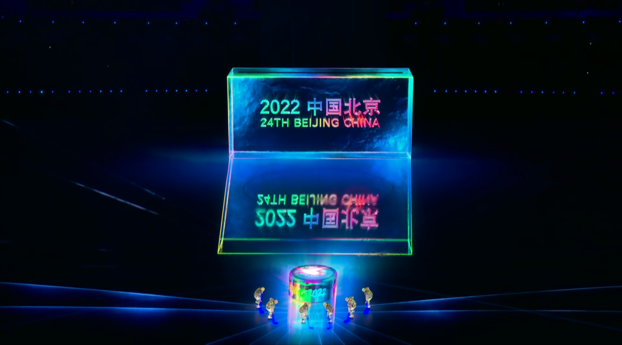 The final part of the initial artistic portion, before the Parade of Nations, was another LED extravaganza, in which the dates and locations of the previous Winter Olympics were projected onto a digital block of ice, followed by human skaters “hitting” a giant projected hockey puck which broke the ice to form the Olympic rings. This was another moment that totally lacked the cultural specificity and humanity that 2008 so vividly exhibited. Additional artistic portions were woven throughout the rest of the ceremony, such as the introduction of a snowflake motif, a line of people walking across the screen to showcase images of community amid the pandemic, and performers skating to a cover of John Lennon’s “Imagine,” of all things.