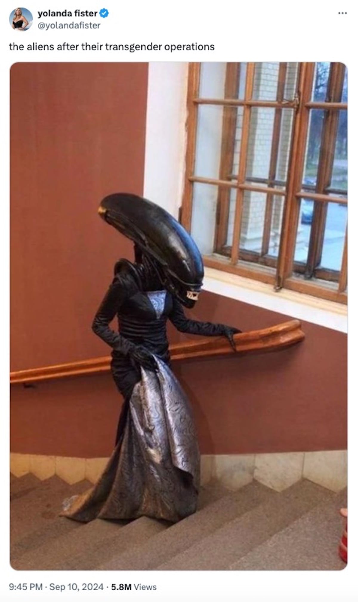 Within seconds of Trump's nonsensical utterings, the internet was ablaze with memes about transgender aliens of all shapes and sizes, proving that they aren't exactly a novel concept ... they hate to hear it.