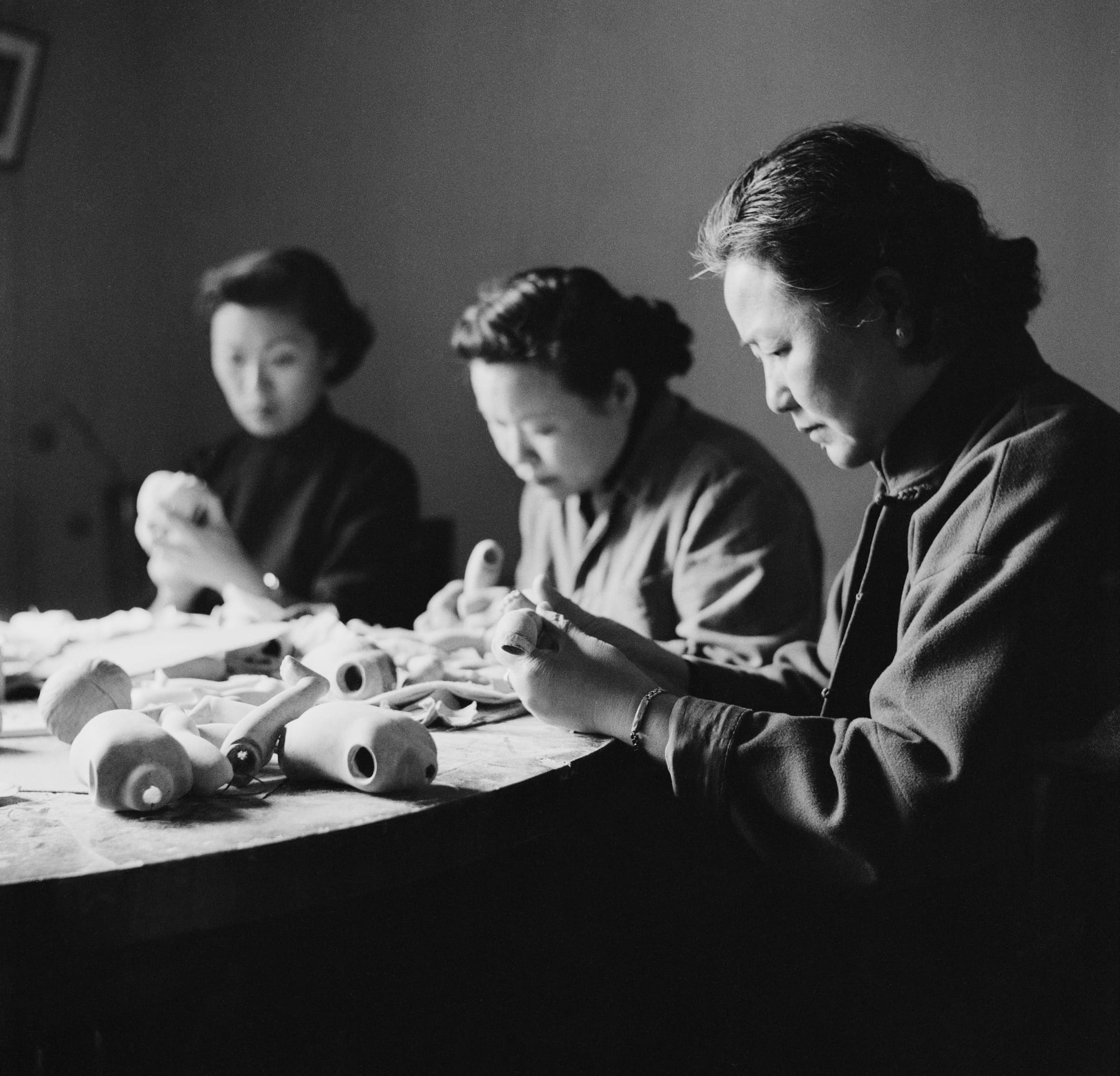 Niu Weiyu, "The Handcrafts Group Organized by Families of Shanghai Business Owners Making Chinese Dolls" (1956), gelatin silver print, 17 5/16 x 18 1/16 inches (courtesy Gao Fan & Niu Weiyu Foundation)