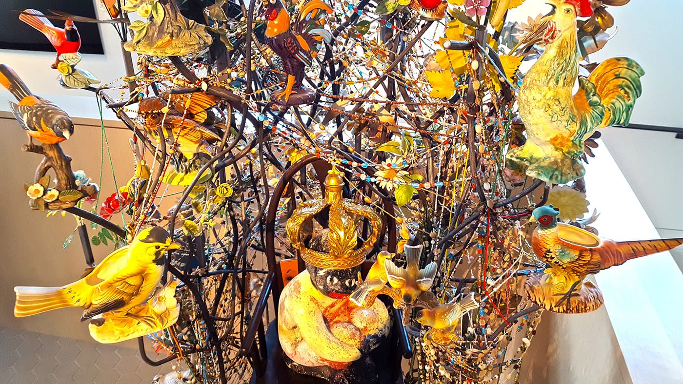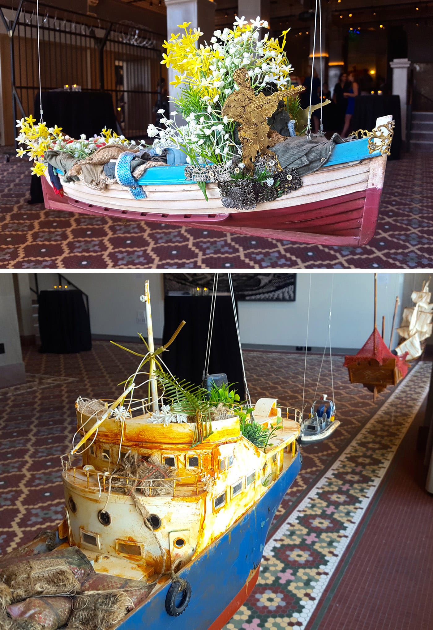 In addition to these and other permanent installations — as well as the “Elevate” series, curated by KC Museum Manager Jori Cheville, which features the work of Kansas City artists in the hotel’s elevators and corridors — there is the museum’s inaugural exhibition, Refuge. Spanning the video room and public galleries on the first two floors, it presents works that are, by turns, exquisite and challenging on the topic of immigration, emigration, and the refugee state.