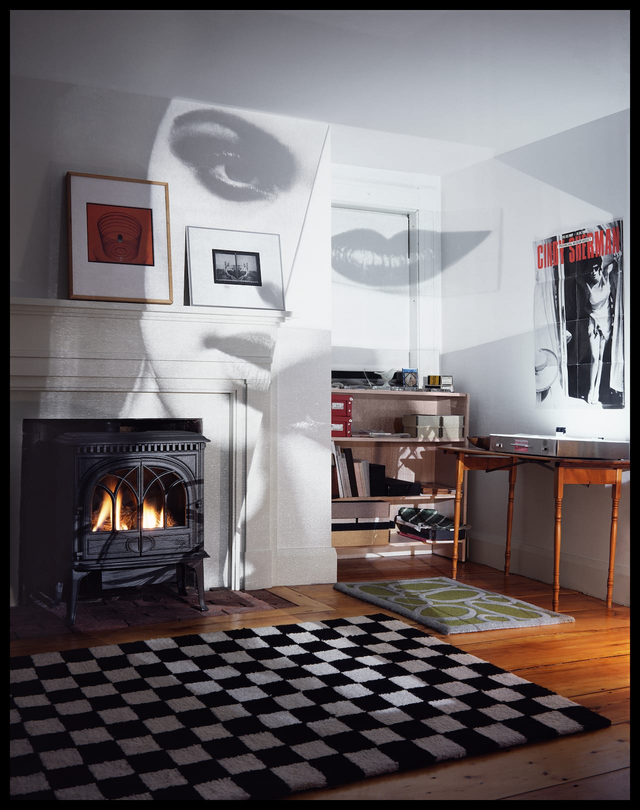A few weeks ago, while a friend and I were driving to Rockland, Maine, where I was scheduled to give a lecture, we stopped in Portland, because I wanted to see the exhibition Rose Marasco: index at the Portland Museum of Art (April 24–December 6, 2015). While the museum billed Marasco as “perhaps Maine’s most prolific photographer,” what piqued my curiosity was the image the museum had on its website. In what was clearly a setup photograph, “Projections No. 5” (2007), the view is of one side of a white room with a fireplace, bookcase and table with a light box on it, presumably where Marasco lives and works. Projected onto the two walls forming one corner of the room is a black-and-white montage of different sections of a young woman’s face. There was something eerie about the setup, which caught my attention. By the time I read this part of the press release I was hooked: