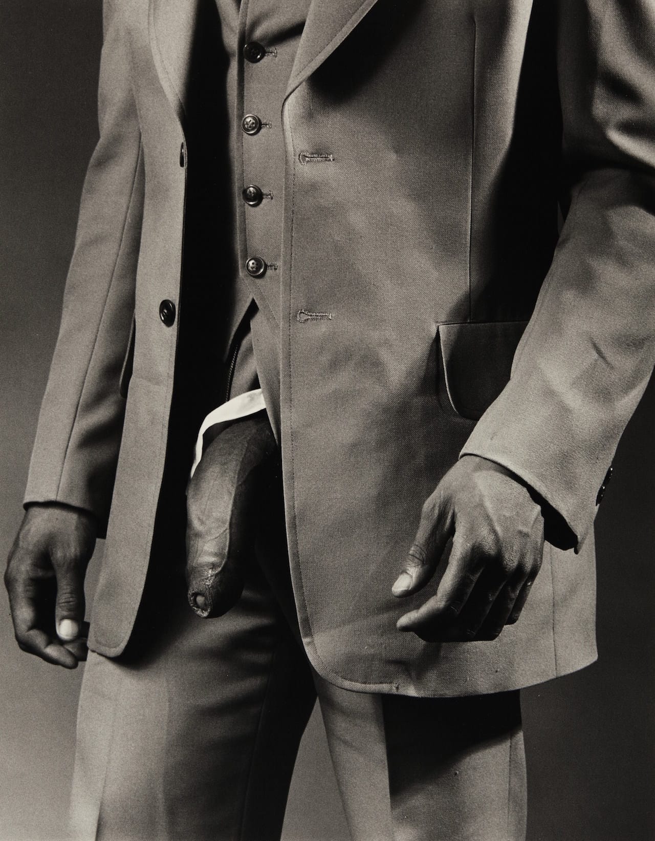 A print of Robert Mapplethorpe‘s “Man in Polyester Suit” (1980) sold for $478,000 (including the buyer’s premium) at Sotheby’s. The work was infamously cited by Senator Jesse Helms as an example of “filthy art.”