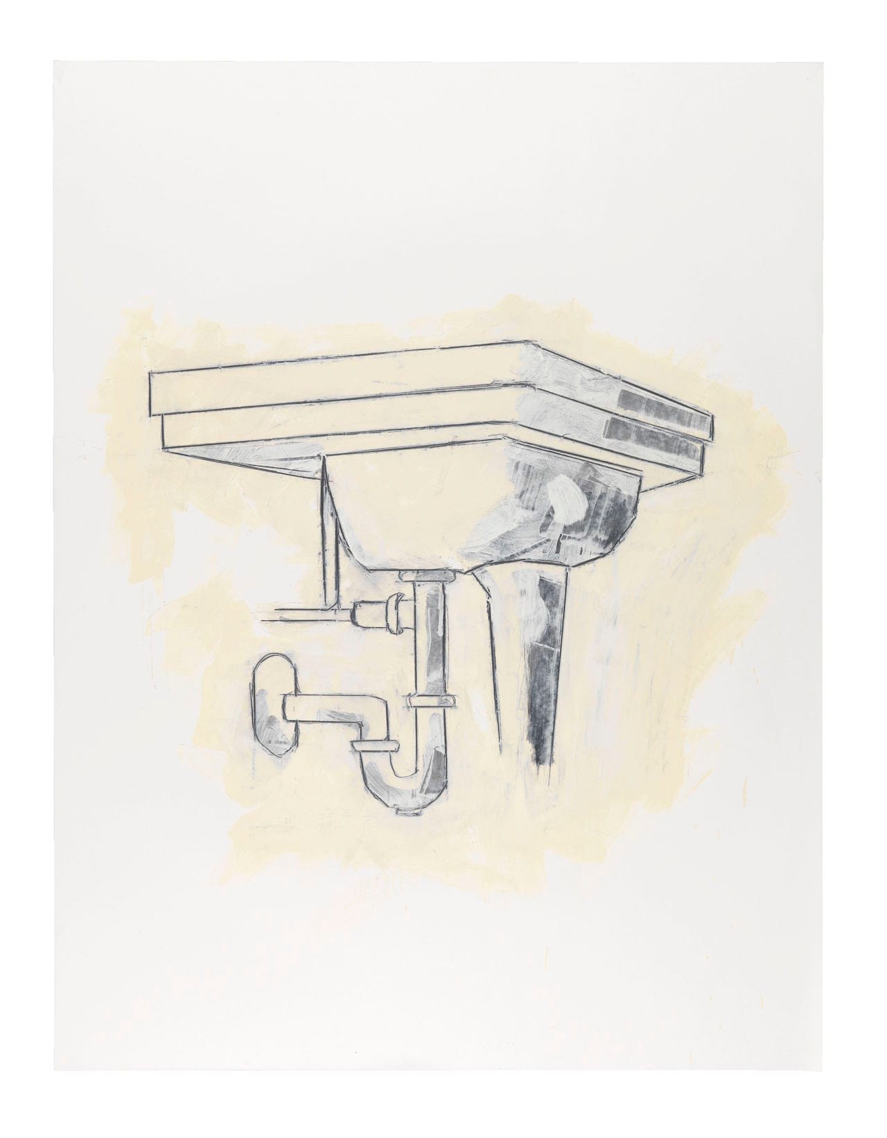 Baechler’s appropriation of these drawings, then, shifts from the observational to the conceptual, which apparently had been his focus all along. The pre-Creagh works in the show, primarily in graphite and oil-based enamel on paper, appear to be derived from the kind of generic imagery you’d find in magazines and newspapers (including, intriguingly, a sink, dated 1981, which immediately recalls Robert Gober’s sink sculptures of the mid-‘80s; in the same email exchange, Baechler stated that while the two artists knew each other, he believes that Gober never saw his sink drawing).