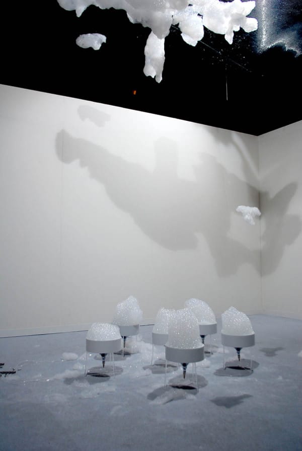 Today in the coolest thing ever: designer Asif Khan has created a kind of generative architecture that actually floats. Helium-infused bubbles sprout from pods on the floor, float up towards the ceiling and are caught by nearly invisible fish nets, creating an ethereal canopy.