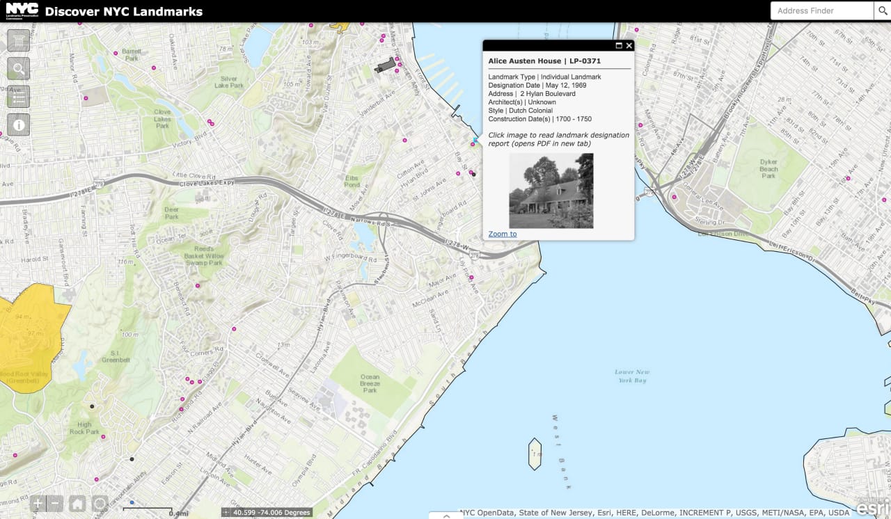 Last month, the New York City Landmarks Preservation Commission (LPC) voted to recommend 30 of the sites from its backlog of nearly 100 as potential landmarks. The decision followed controversy over a proposal to clear the backlog entirely. This week, in an effort LPC states is part of a greater attempt “to bring greater transparency, efficiency, and public access to the agency,” the organization is visualizing the city’s pending and existing landmarks in the Discover NYC Landmarks map.