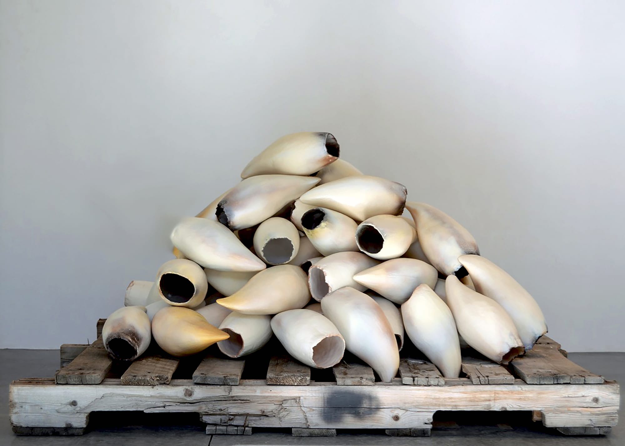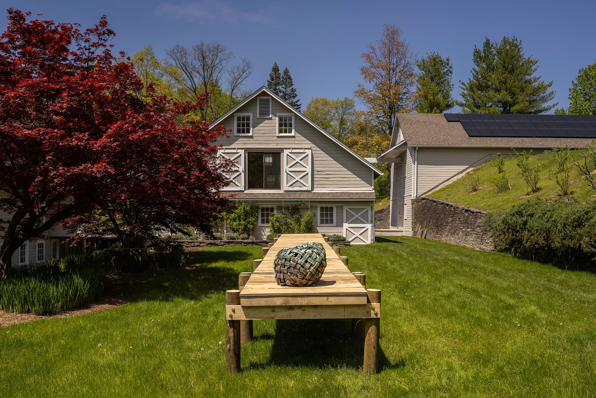 The third in an outdoor series of installations, On the Grounds displays a site-responsive installation made of wood, clay, and fiber in the landscape encompassing Al Held’s Boiceville studio. The exhibition includes dock-like structures and ceramic vessels by Bahamian visual artist Anina Major that continue her exploration of diasporic ties to home. Major also engages with Held’s former swimming pool that has been reclaimed by the elements. New York-based artist Sagarika Sundaram’s abstract wool sculptures containing natural spiral allusions are also spread throughout the grounds, nestled in specific areas chosen by Sundaram. — MP
