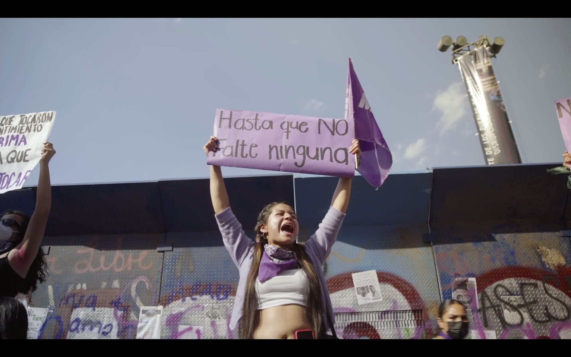 Amor Rojo, titled after the prominent Bolshevik party member, Soviet ambassador, and Marxist feminist Alexandra Kollontai’s novel Red Love (1927), is Dora García’s third and final film installment analyzing the uptick in feminist rebellions in Mexico through Kollontai’s ideological lens. With the help of three researchers accessing Kollontai’s archives in Mexico City, García connects Kollontai’s feminist theories on free love and elimination of the nuclear family to the increase in Mexican trans-feminist uprisings. She applies this research to explore the patriarchal structures that fuel alarming rates of gender-based violence across the country. — RN