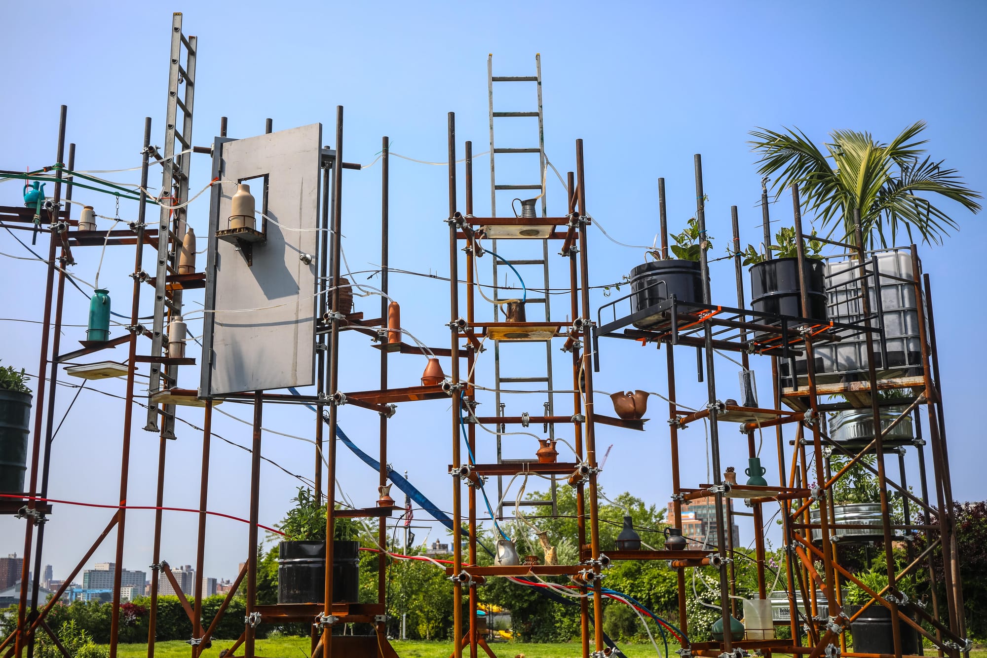 Artist Mary Mattingly’s site-specific installation at Socrates Sculpture Park in Queens includes a 65-foot-high clock that mirrors the Manhattan skyline, includes edible plants, and maintains its tempo with water pumped from the river. The exhibition includes a self-sufficient home, too, ultimately asking viewers to reflect on the environmental impact of humans and consider the fragility of nature’s balance. — EV