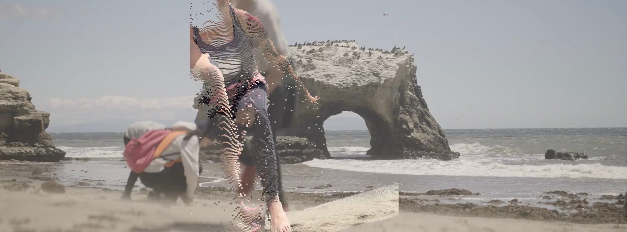 Oceanic, Portal is an experience-based façade installation featuring three ghostly dancers teleporting between the Natural Bridges Beach in Santa Cruz, California, and the Leslie-Lohman Museum of Art in New York City. The 3D video was captured using LiDAR scanners and altered with augmented reality elements. Artists micha cárdenas, Gerald Casel, Ian Costello, Cynthia Ling Lee, Susana Ruiz, and Huy Truong draw connections between the exacerbated need for liberation and justice for marginalized groups throughout the COVID-19 pandemic and the ecological conditions impacting marine life on the West Coast. — Rhea Nayyar