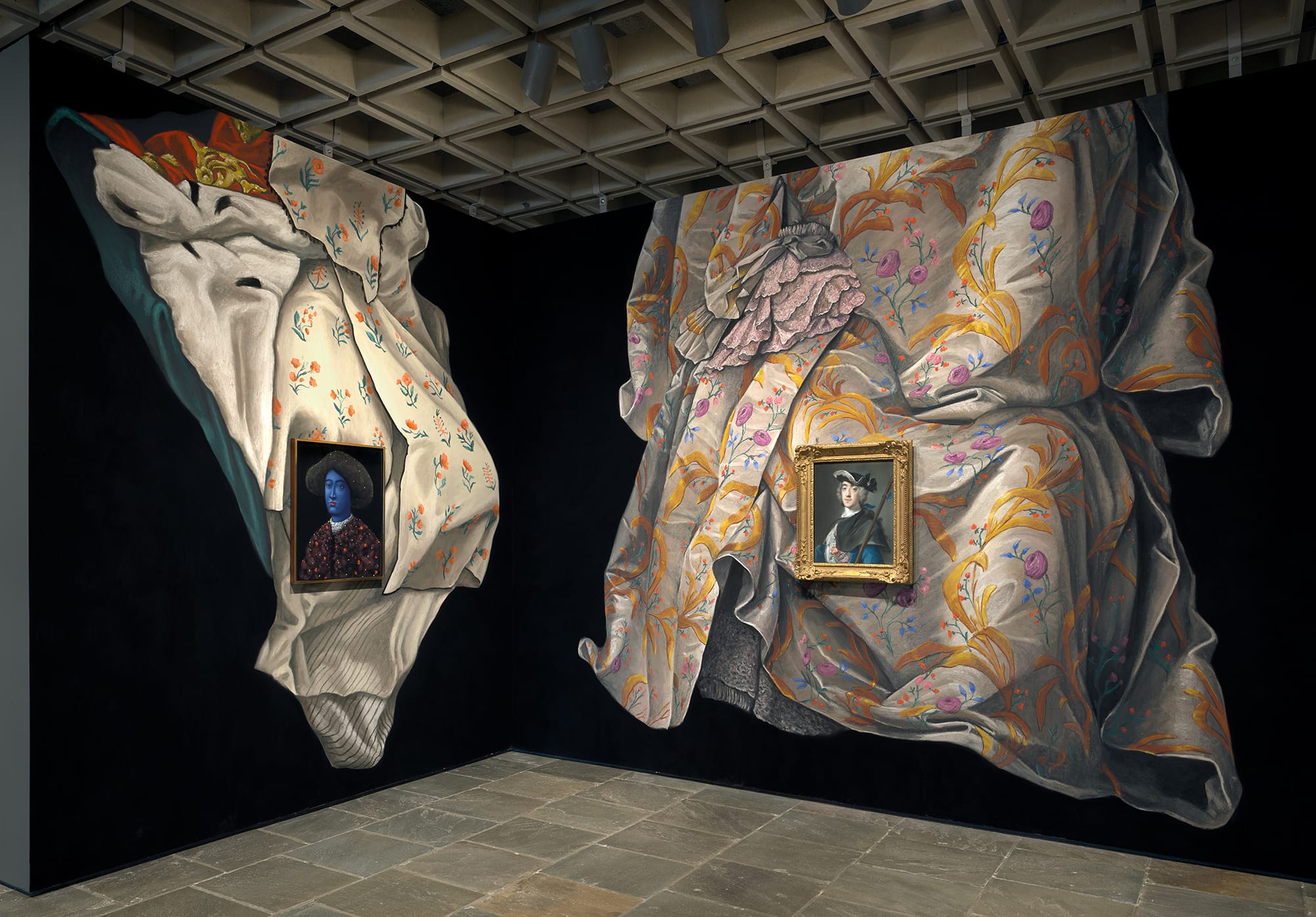 At the Frick Madison, the material and conceptual anchor of Swiss artist Nicolas Party’s site-specific installation is Venetian Rococo artist Rosalba Carriera’s “Portrait of a Man in Pilgrim’s Costume” (c. 1730). Carriera’s pastel portrait is flanked by two original portraits by Party and surrounded by a pastel mural of decadent fabric drapery, which samples from the likes of Jean-Étienne Liotard and Maurice-Quentin de La Tour, comprising an installation that pays homage to Carriera and other 18th-century pastelists who helped popularize the medium. — RN