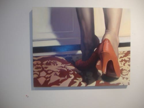 Even the most mundane scene can seem sexualized and slightly creepy in Lynch’s films and this is also reflected in Courtney S. Murphy‘s “Reach” (2011). Rubbing her heels together to take off her fire-engine red pumps, the woman, or possibly man, cannot be seen, giving this painting a fetishistic quality.