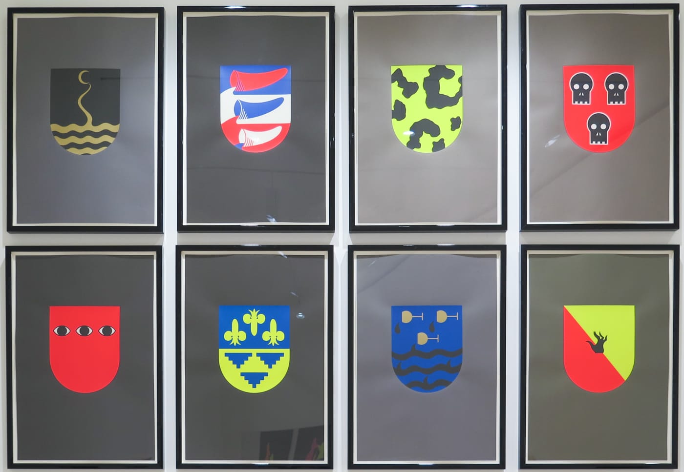 Further on in the exhibition, moving into the hippie era — when the members of General Idea were presumably experimenting with the same drugs as so many of their peers — their work began to reflect the psychedelic times. In the pieces from that period, the aesthetics — pyramid forms and neon colors, for example — echo other alternative artist groups and communes, such as Drop City’s Clark Richert. From there, the collective’s work takes on a noticeably more material form, including paintings in which it represented playful, gender-bending sex acted out by neon poodles — a fun foray into free love before the seriousness of AIDS shackled their work to the terminal disease.