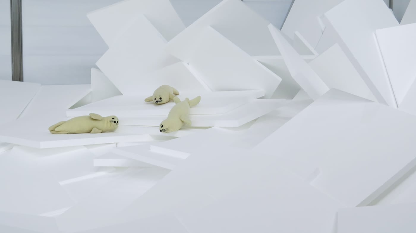 It’s encouraging that the Jumex team has gained back some specificity and moved — at least a little bit — away from over hanging its galleries and cluttering the exhibition spaces. The exhibition is still packed to the gills, but for the most part not gratuitously so. That said, one large gallery of Broken Time is completely taken up by an irritating installation that seems intended to protest climate change. Titled “Fin de sciècle” (1990), it consists of a group of toy stuffed seals sitting on a sea of Styrofoam in place of ice — in other words, a crazy waste of space. It would have been a more effective use of space if the giant foam monstrosity was left out and the rest of the work was given some room to breath. As such, it makes for a truly bewildering, off-topic departure from a catalogue of poignant and ephemeral projects activated by tangible action.