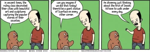If you don’t know Rehabilitating Mr. Wiggles, you should. Its creator Neil Swaab is a genius … well, if you think genius involves illustrating a 3’7″ teddy bear who has been convincted of burglary, assault, assault with a deadly weapon, assault with a meat product, assaulting a meat product, posession, intent to cause distress on a senior citizen, arson, kidnapping, extortion, conspiracy, light treason, illegal use of a contraceptive, vandalism, negligent homicide, public urination, public drunkeness, disorderly conduct, illegal disposal of a body, parking in a loading zone …