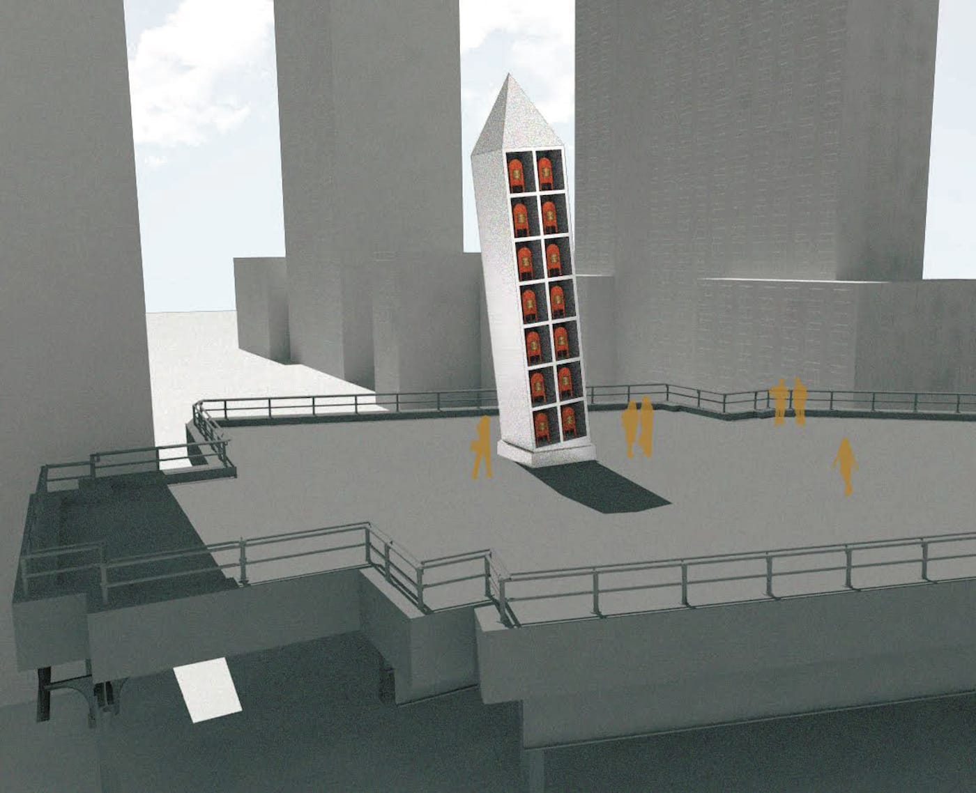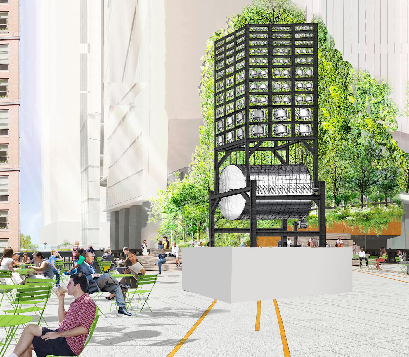 Set to stand at West 30th Street and Tenth Avenue, on what will be the park’s newest and largest open space, known as the Spur, the plinth will be seen easily from the road below. The installation of the inaugural artwork will coincide with the Spur’s opening; until then, High Line Art will be mulling over which of the 12 proposals to use to set the program in motion. The aforementioned chameleon is the imagining of British artist Jeremy Deller; the bell tower — intended to chime songs by Michael Stipe — is the vision of New Yorker Jonathan Berger; and the boob — to be sculpted of soil, sand, and clay — the unabashed creation of German artist Lena Henke. Other proposals include Paola Pivi‘s 22-foot-tall version of the Statue of Liberty, whose face would change weekly to represent someone who either attained or is seeking freedom in the United States; Sam Durant‘s drone that would rise over pedestrians and double as a weather vane; and Simone Leigh’s first monumental work in her ongoing sculptural series on the black female body, Anatomy of Architecture. Others on the shortlist are Minerva Cuevas, Charles Gaines, Matthew Day Jackson, Roman Ondak, Haim Steinbach, and Cosima von Bonin.