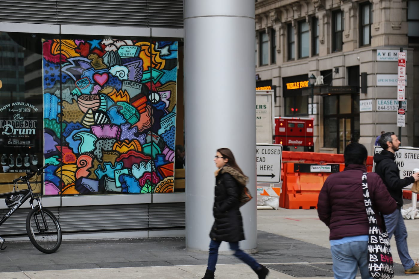 Banners painted with messages of love, unity, and resilience now adorn the facades of dozens of buildings around Philadelphia and Atlanta as a response to what organizers of the coordinated drops describe as “a global shift towards fear and exclusivity.” Although the dual-city effort’s urge for America to come together launched today to coincide with Donald Trump’s inauguration, it is not a protest directed at America’s least popular president in decades but rather serves as a visual stance against hate and divisiveness during this particularly tense weekend.