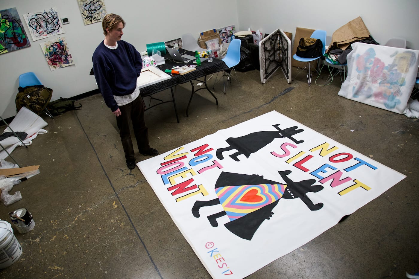 “For me, as an immigrant from Peru, and a woman, this project is important in a time when hate towards people like me and other marginalized groups is being justified,” Campana told Hyperallergic. “We, as artists, need to create spaces of support, hope and resistance. For me this project is simply a way that I can give people a little glimpse of hope. It is a way for me to tell them we are not alone, and for the whole ATL arts community to come as one to make the statement that we do not stand for hate.”