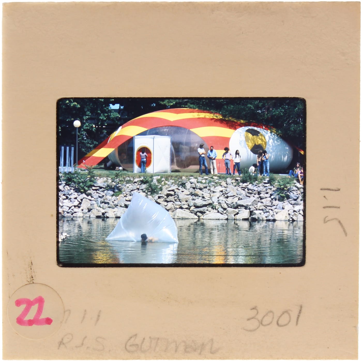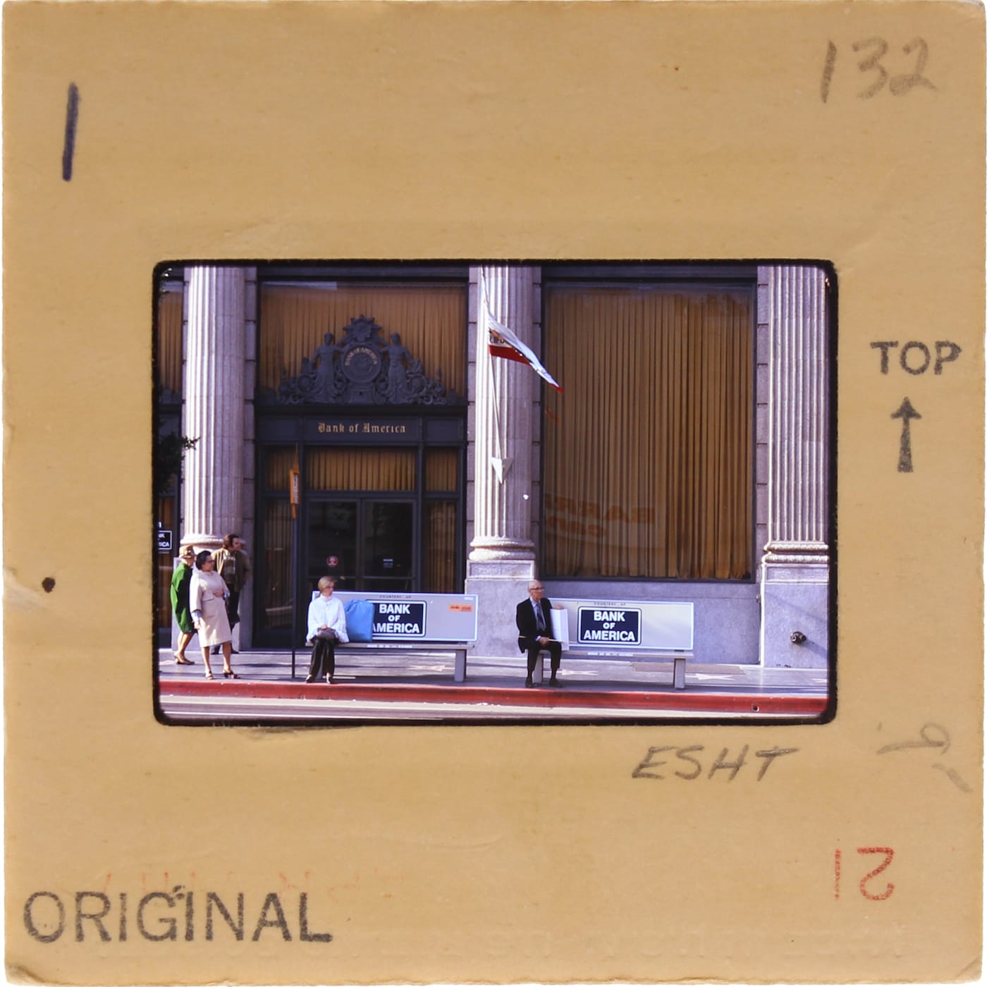 The number of people involved in Environmental Communications changed throughout its decade-long existence, but the curators have identified at least over two dozen of its members. Its primary leaders were Roger Webster, whose name appears on a number of the slides, Bernard Perloff, David Greenberg, and Ted Tokio Tanaka. Working in the same spirit as experimental media collectives active at the time like Ant Farm, Environmental Communications engaged with their surroundings with an air of performance: photographing cities to create academic resources was an artistic production, but so were the administrative deeds of dealing with orders from institutions and shipping out catalogues.