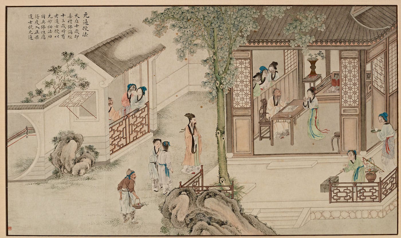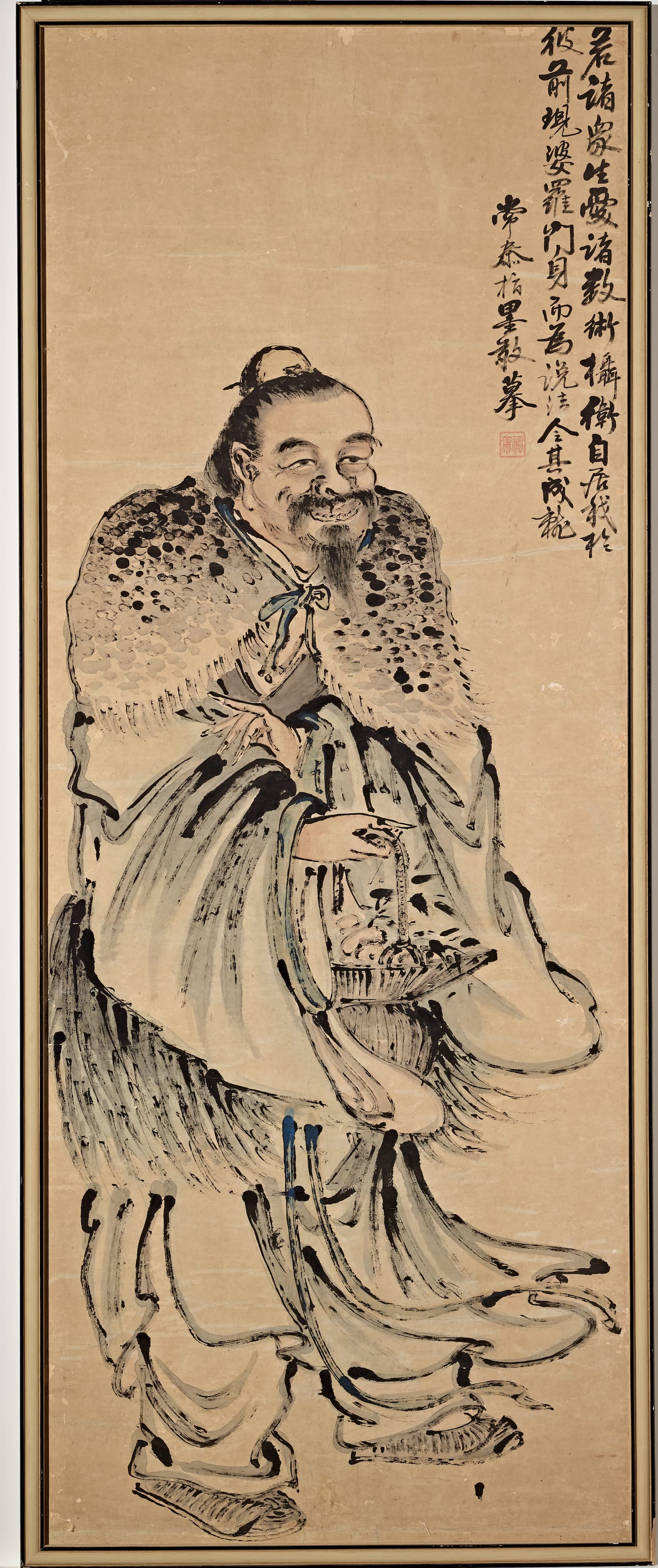 The capped fungus is tough to find in a number of works, although its presence is always significant. A c. 18th-century Chinese painting by Changtai of the deity Shennong, also known as the Divine Farmer, shows the bearded sage with a basket holding lingzhi. The divine herb-picker was a recurring trope, representing someone with superhuman powers to find lingzhi in the wild, as Chen describes in an accompanying catalog, and to create elixirs of life. Gods and lingzhi also appear in a lengthy 16th-century silk painting by Qiu Yang, where the mushroom is presented as a gift to the most-worshipped goddess in Chinese mythology, Queen Mother of the West.
