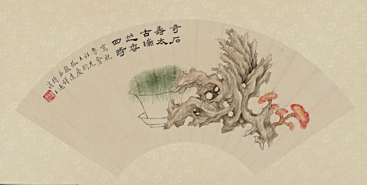 In ancient Chinese art, plants often served as more than decorative motifs, also representing valuable concepts such as luck and longevity. Most widely recognized for their symbolic status are the “Four Gentlemen” — the plum blossom, the orchid, the chrysanthemum, and the bamboo — but much less known is the humble mushroom. Brown, wrinkled, and often stubby, the fungus may not be the most beautiful, but it proved to be a highly popular motif, first in Chinese art, and gradually throughout East Asia.