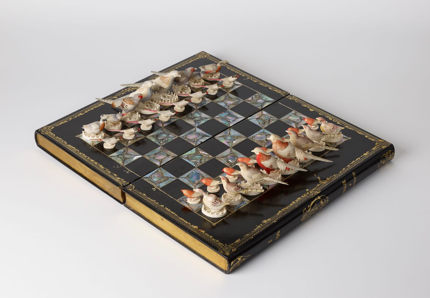 The chess board as a form of sculpture is explored in Masterworks: Rare and Beautiful Chess Sets of the World, a book recently published by FUEL that surveys dozens upon dozens of sets created over centuries from countries around the world. As Dylan Loeb McClain, a former New York Times chess columnist, writes in an introduction, the Staunton design, named for the 19th-century chess master Howard Staunton, is likely the most familiar to many of us, ubiquitous and representing the “de facto standard” used in the World Chess Federation. Masterworks highlights a selection of extraordinary examples, from one-of-a-kind sets made for royalty like Catherine the Great to a rare, circa-1900 game from Japan that features pieces shaped like birds — so accurate you can apparently identify each one with a birdwatching guide. As McClain sums it up, “The game is universal, but how it is adopted and adapted is not.”