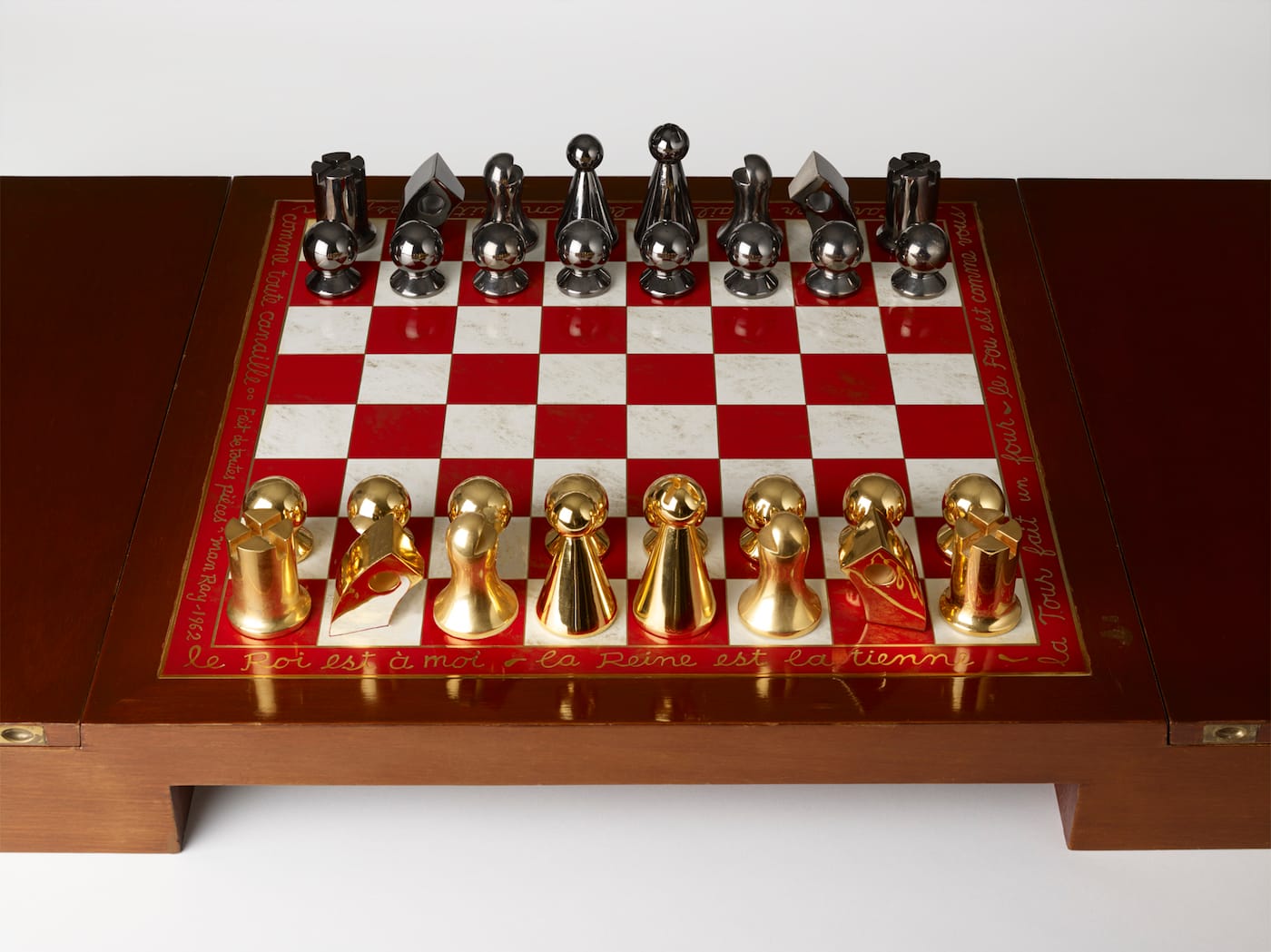 In 1944, Marcel Duchamp and Max Ernst organized the group exhibition Imagery of Chess at Julien Levy Gallery, which featured paintings and sculptures of new designs of chess pieces. Thirty-two artists including Man Ray, Dorothea Tanning, and Isamu Noguchi contributed their visions of the board game. The Surrealists, of course, were far from the first to focus on the design of chess, although their artworks may have been among the first conceptual interpretations of the age-old activity.